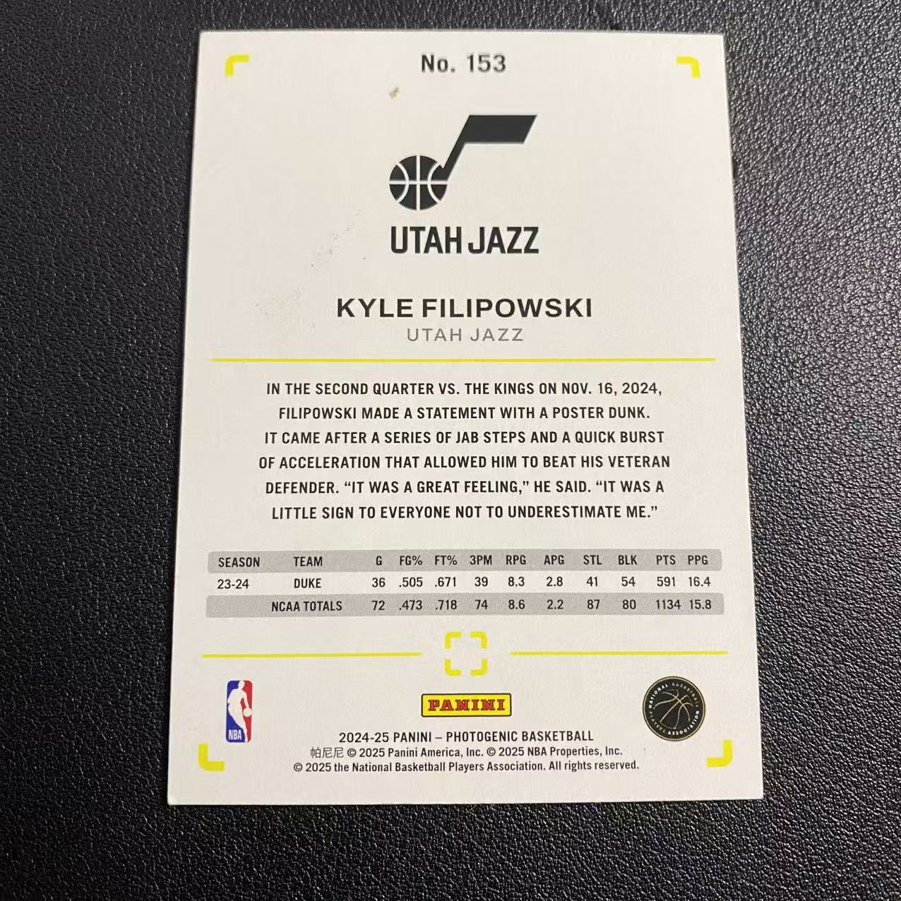2024-25 Panini Photogenic Kyle Filipowski RC #153 上镜 凯尔·菲利波夫斯基 爵士 瑕疵如图 介意勿拍