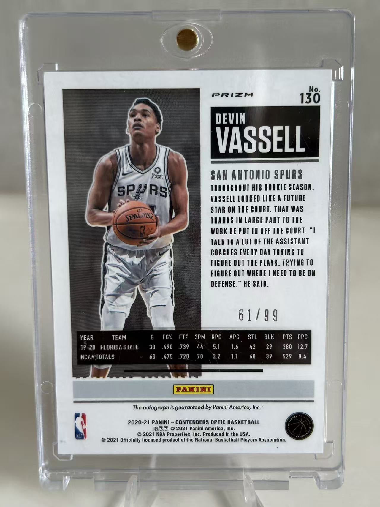 2020-21 Panini Contenders Devin Vassell RC 马刺 新秀rc 德文 瓦塞尔 球票op 蓝折 99编 签字 卡签