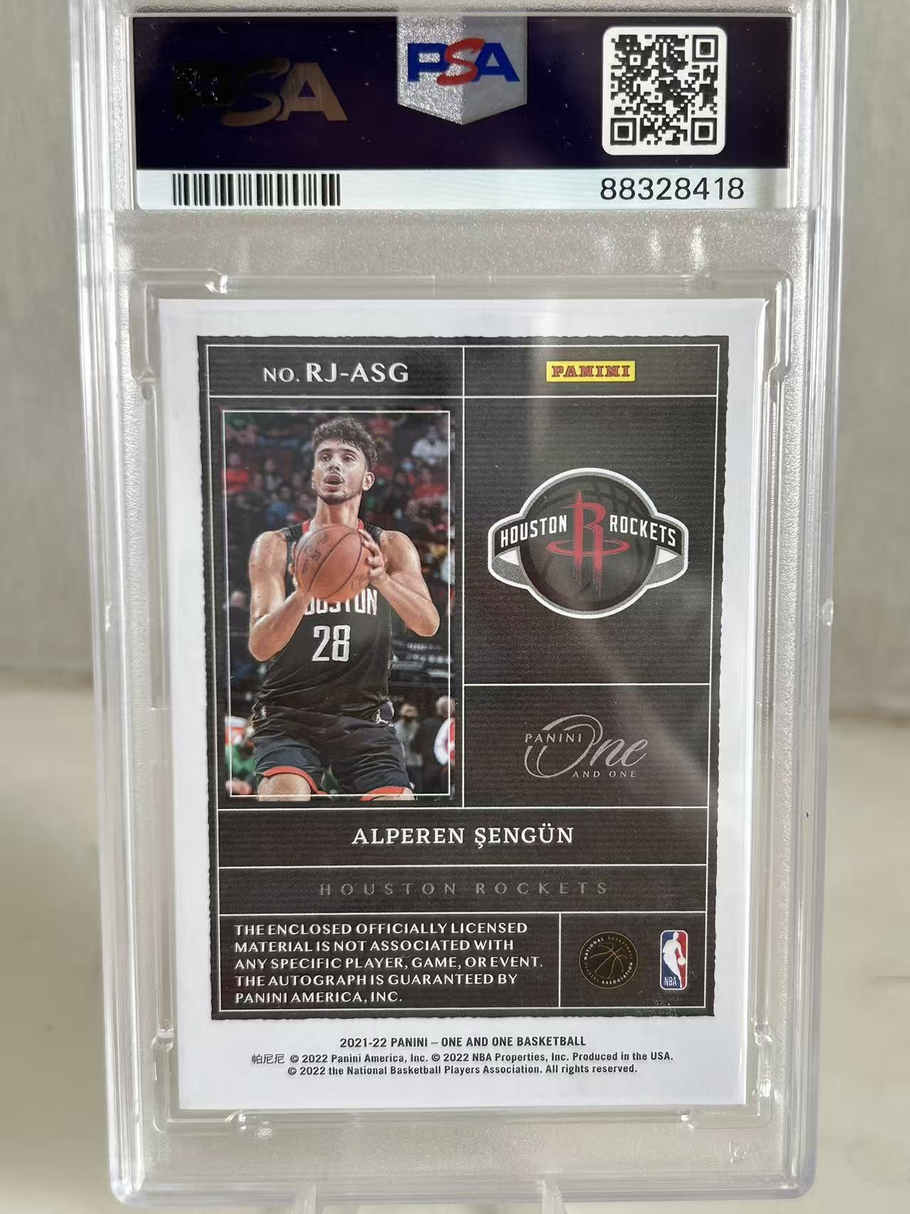 2021-22 Panini One and One Alperen Sengun RC POP1 火箭 新秀rc 阿尔佩伦 申京 /25编 卡签 签字 球衣patch 评级卡品psa10分