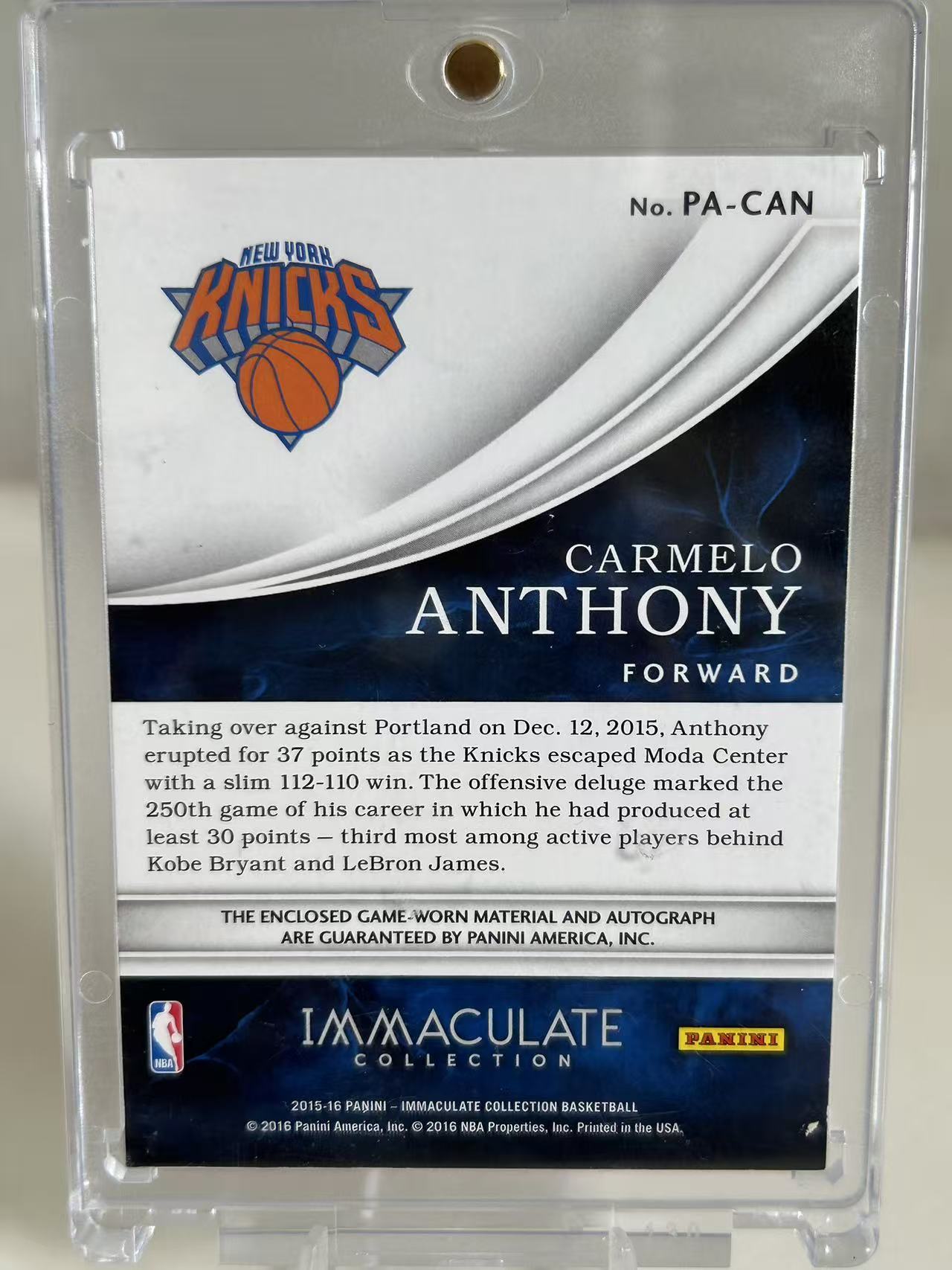 2015-16 Panini Immaculate Carmelo Anthony 卡梅隆 安东尼 甜瓜 卡签 签字 球鞋物料切割 鞋签 60编 卡品如图 收藏必备