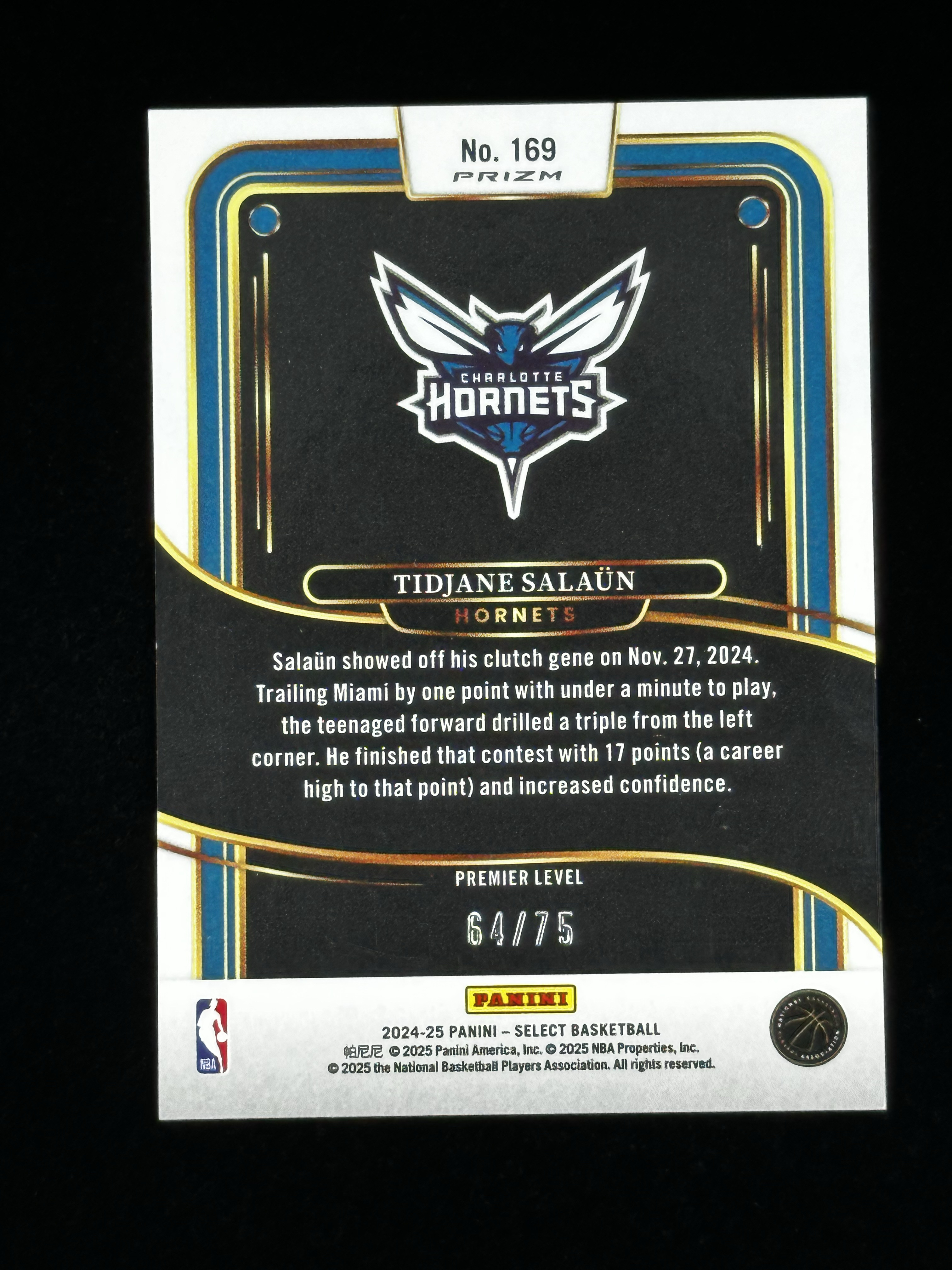 2024-25 Panini Select Tidjane Salaun RC 【麦考拍卖】高端末年系列 新秀RC 二级2级 正绿折射限量卡 黄蜂超新星 萨隆 🌌/75编🌌