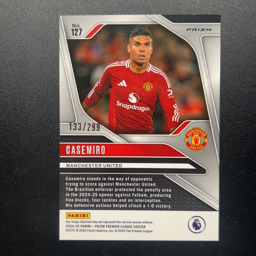 2024-25 Panini Prizm Casemiro 英超 PZ 卡塞米罗 曼联 胖虎 蓝折 133/299编 CASEMIRO 卡品如图 收藏必备