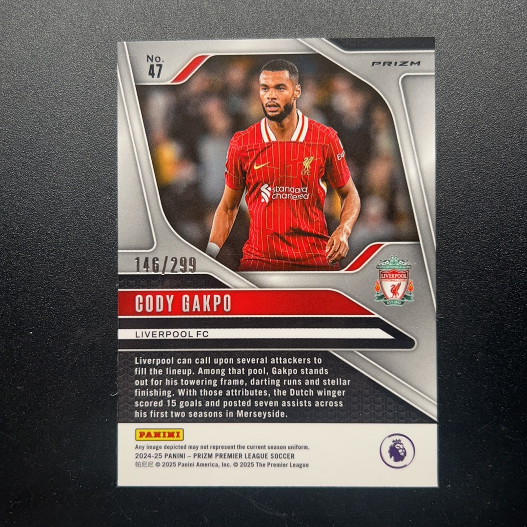 2024-25 Panini Prizm 英超 末年 利物浦 荷兰 Cody Gakpo 加克波 蓝折 折射 146/299编 color match 卡品如图