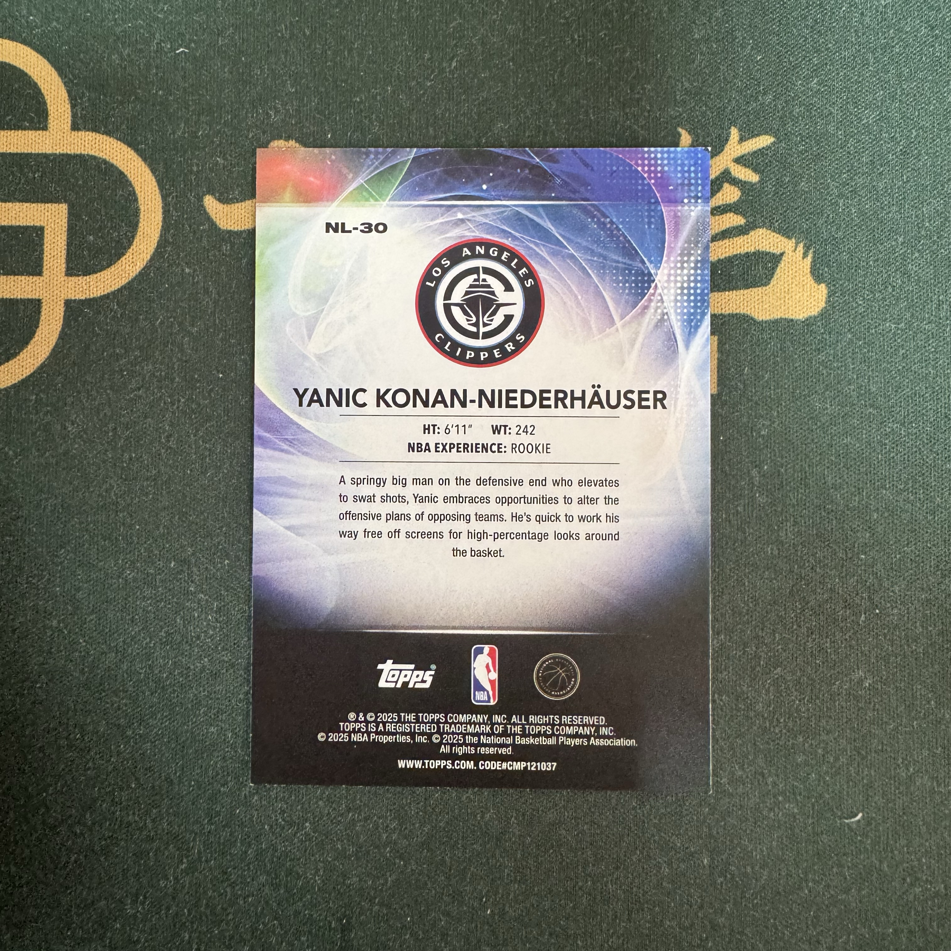 2025-26 Topps Flagship Yanic Niederhäuser RC 【十三笔】No Limit 特卡 RC 新秀 亚尼克 尼德豪泽 快船 卡品如图(YY)