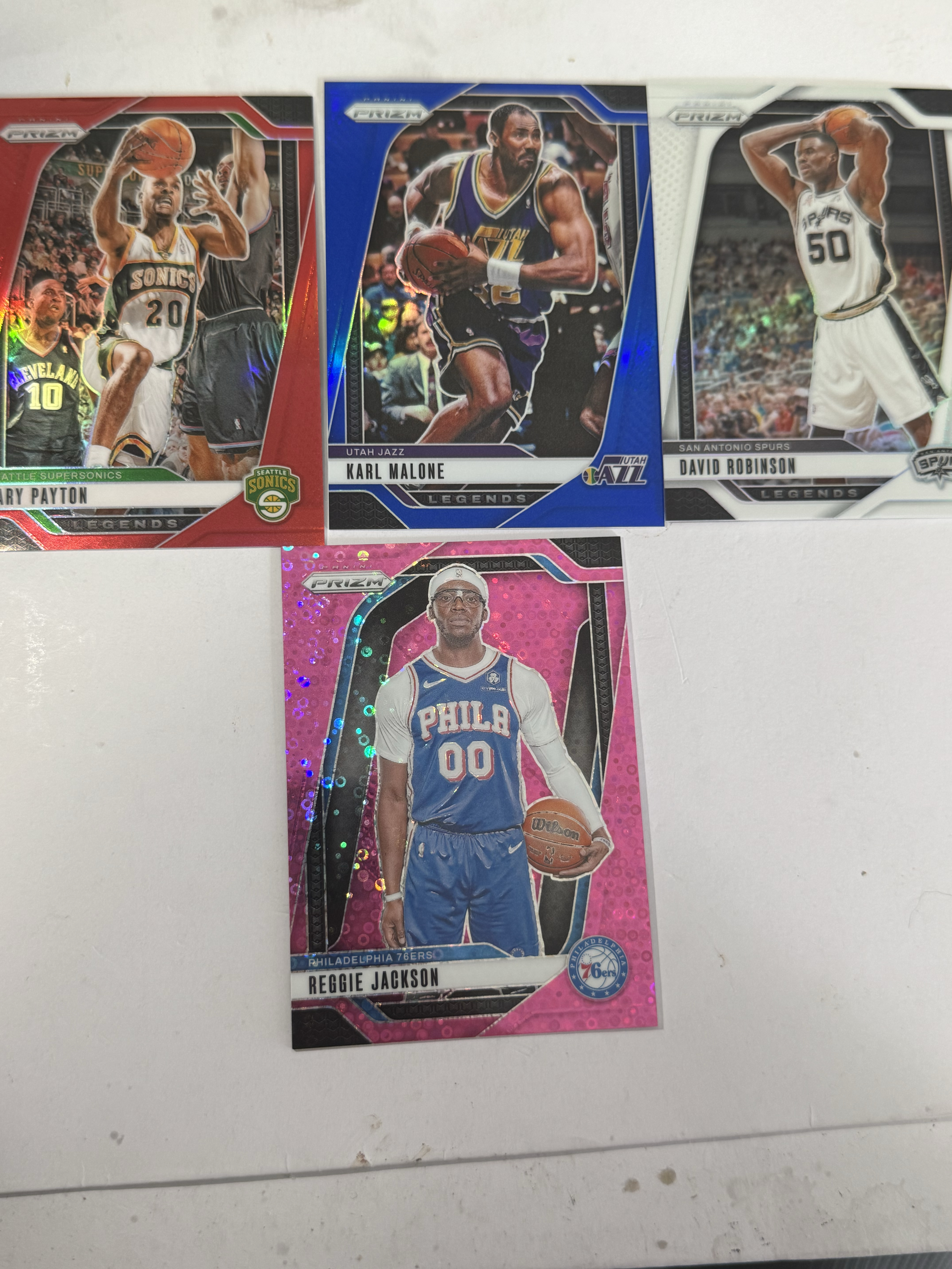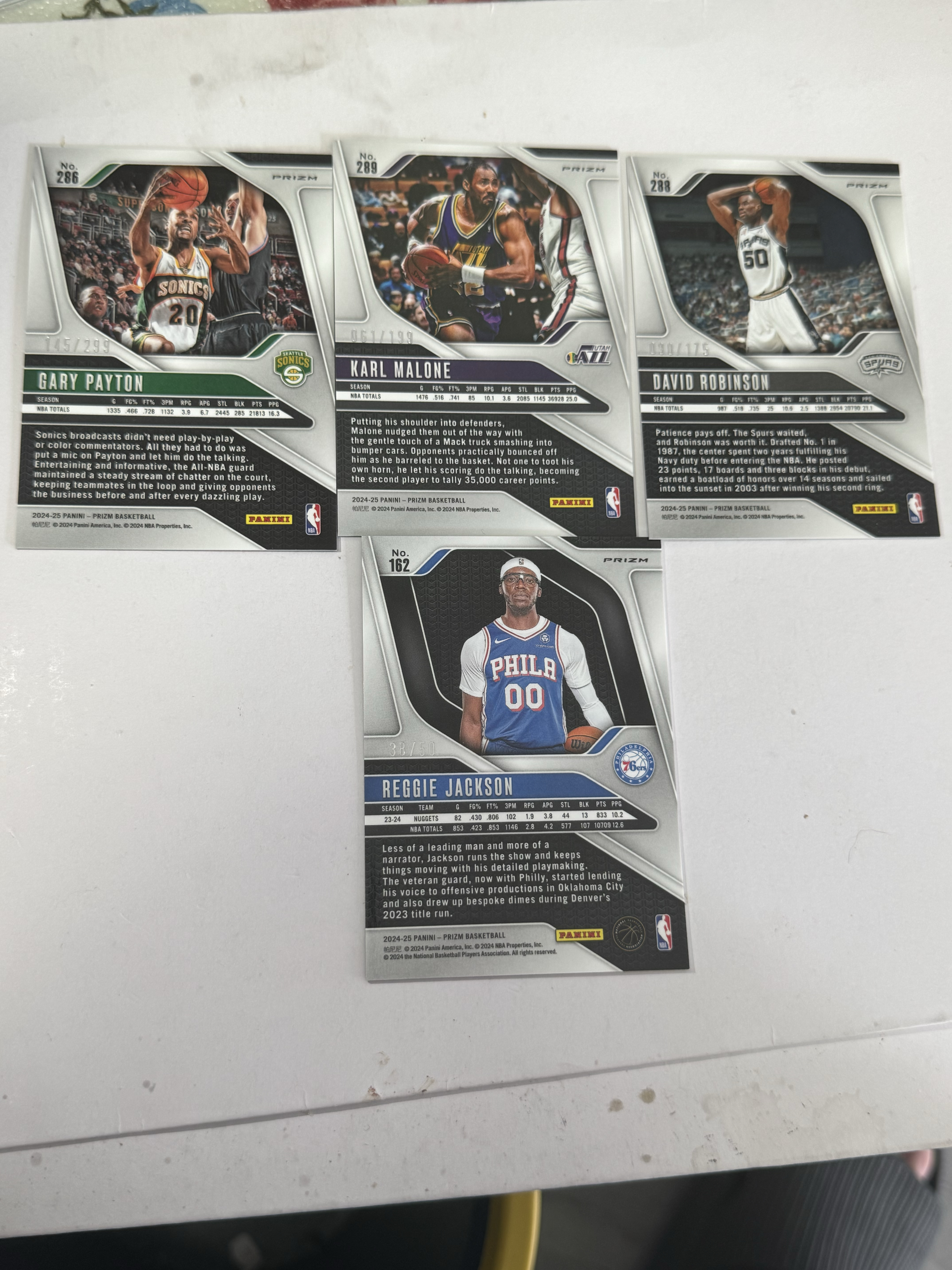 2024-25 Panini Prizm Gary Payton Prizm 折射 加里 佩顿 大卫 罗宾逊 雷吉 杰克逊 卡尔马龙 邮差 手套 海军上将 带编 3人lot 卡品如图