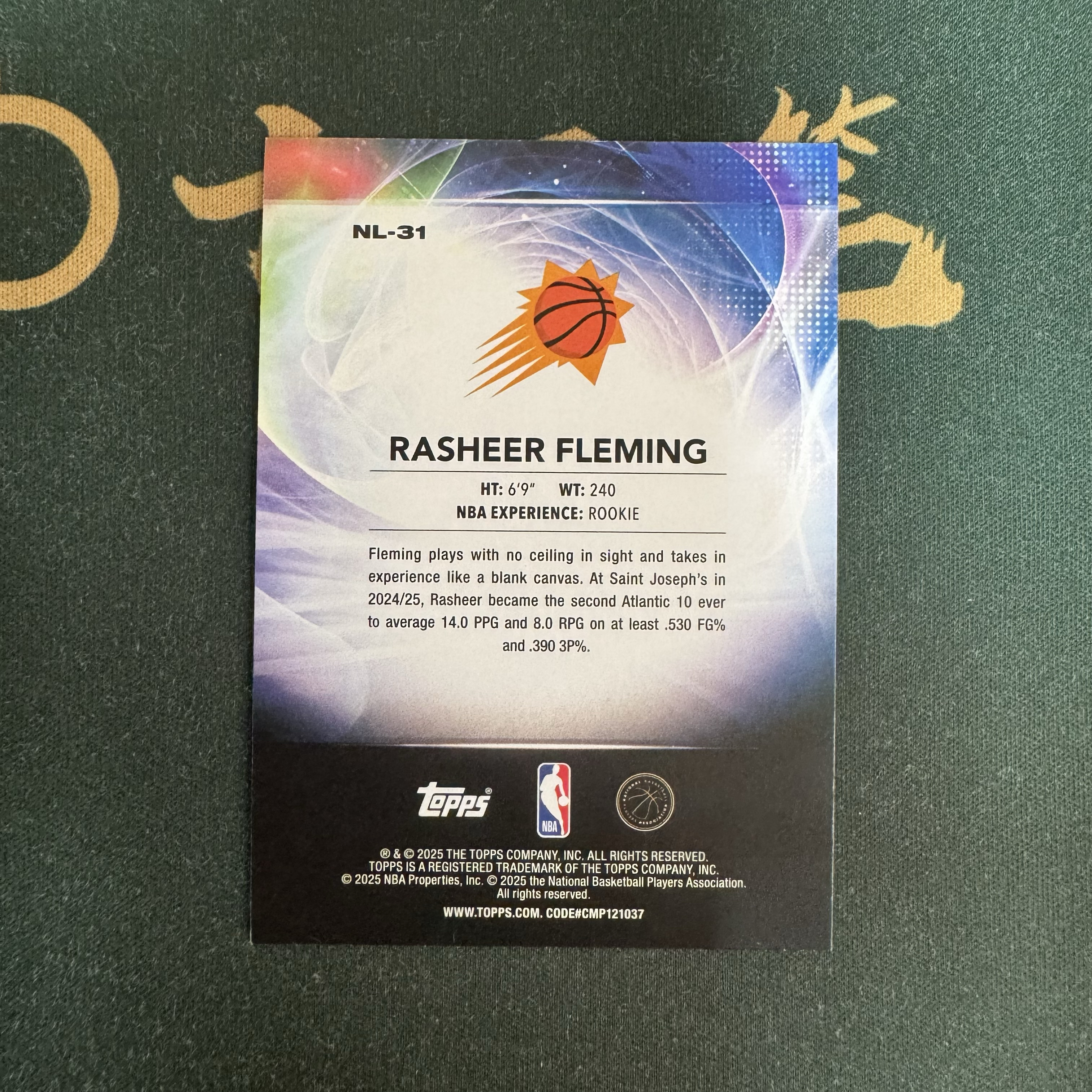 2025-26 Topps Flagship Rasheer Fleming RC 【十三笔】No Limit 特卡 RC 新秀 拉希尔 弗莱明 太阳 折射 卡品如图(YY)