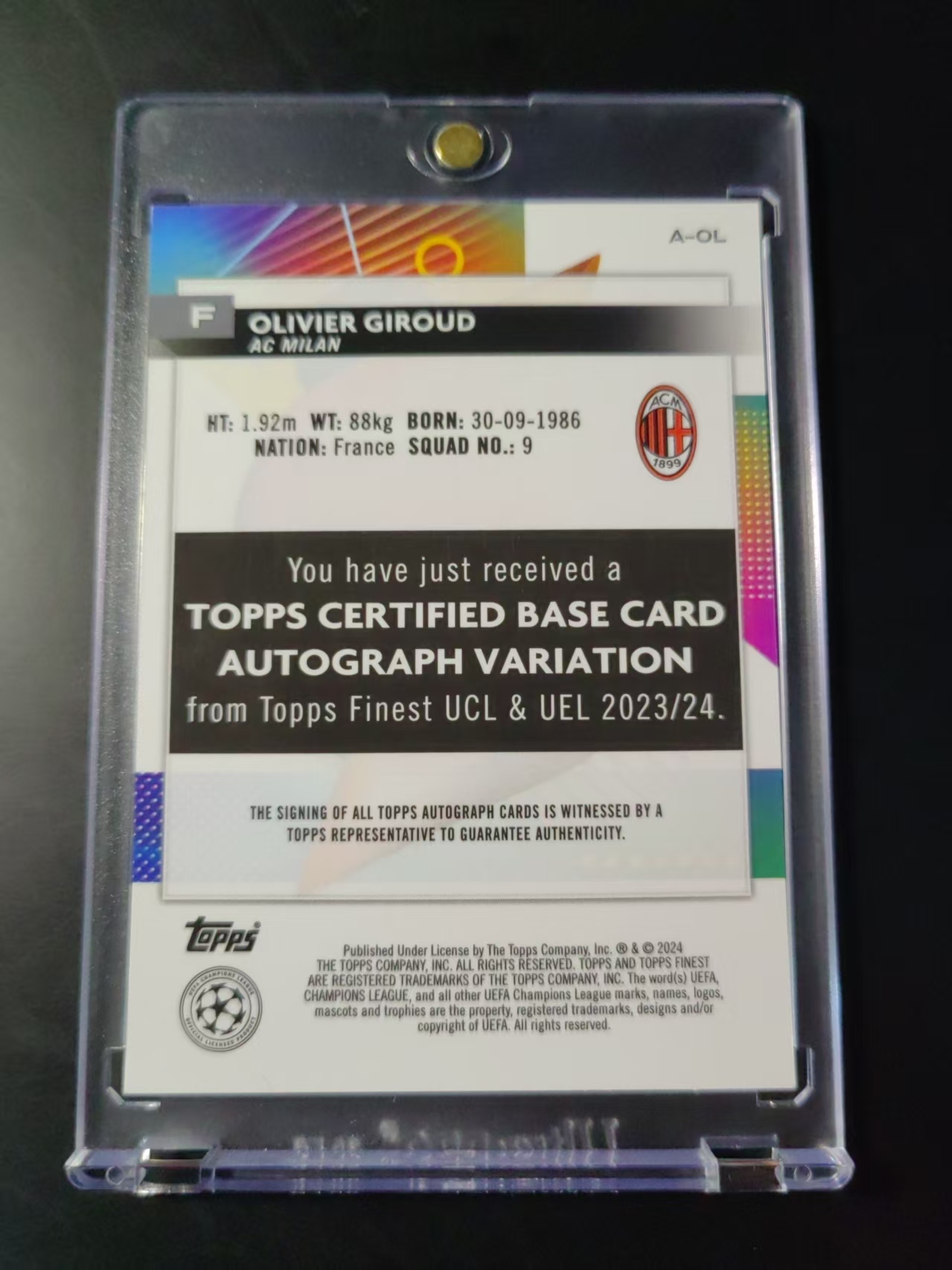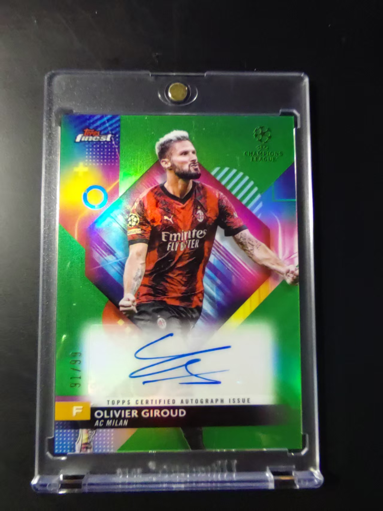 2023-24 Topps Finest Olivier Giroud 欧冠 AC米兰 奥利维尔 吉鲁 法国🇫🇷 阿森纳 切尔西 签字 绿折 折射 99编 里尔 不保卡品