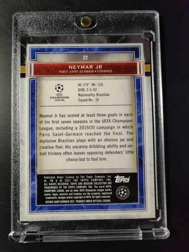 topps2021欧冠博物馆MC内马尔Neymar jr大巴黎 巴西队 巴萨 金折射 99编 不保卡品