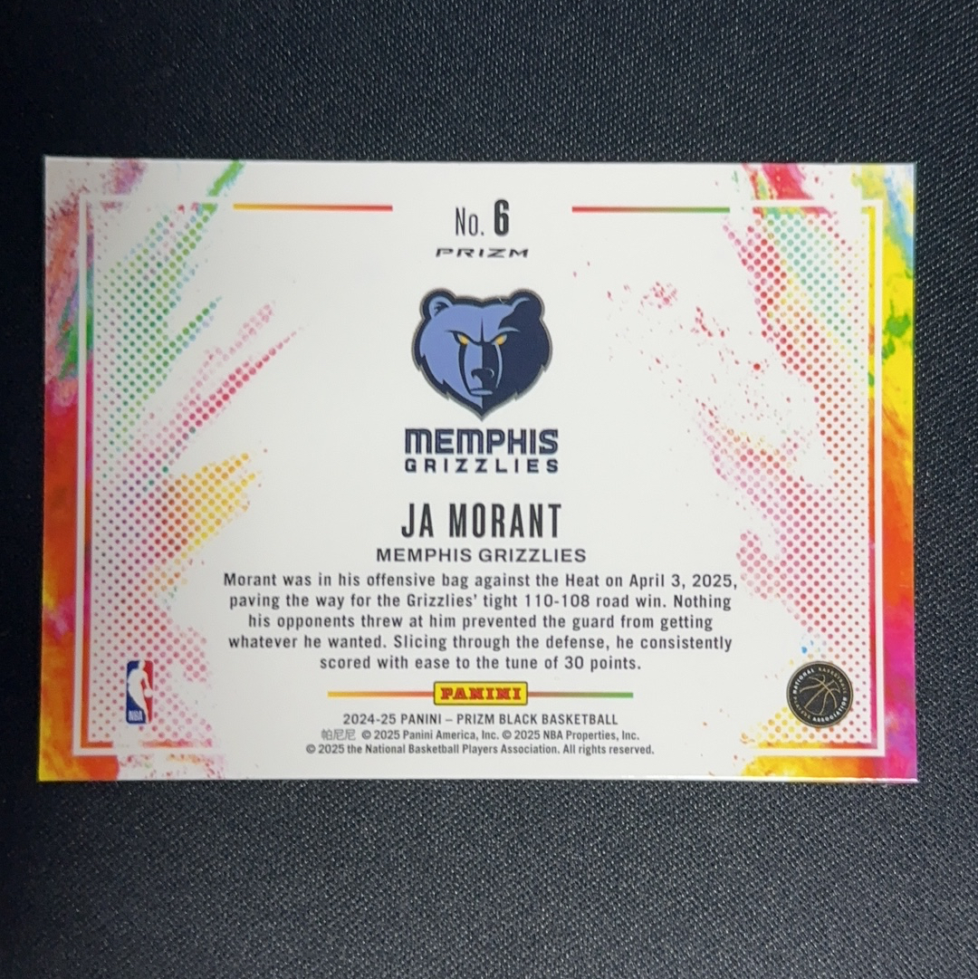 2024-25 Panini Prizm Black Ja Morant pz 贾 莫兰特 超大比例 ssp 泼墨 colorblast 最美折射 孟菲斯灰熊 联盟门面 腰王 超大hit 卡品如图