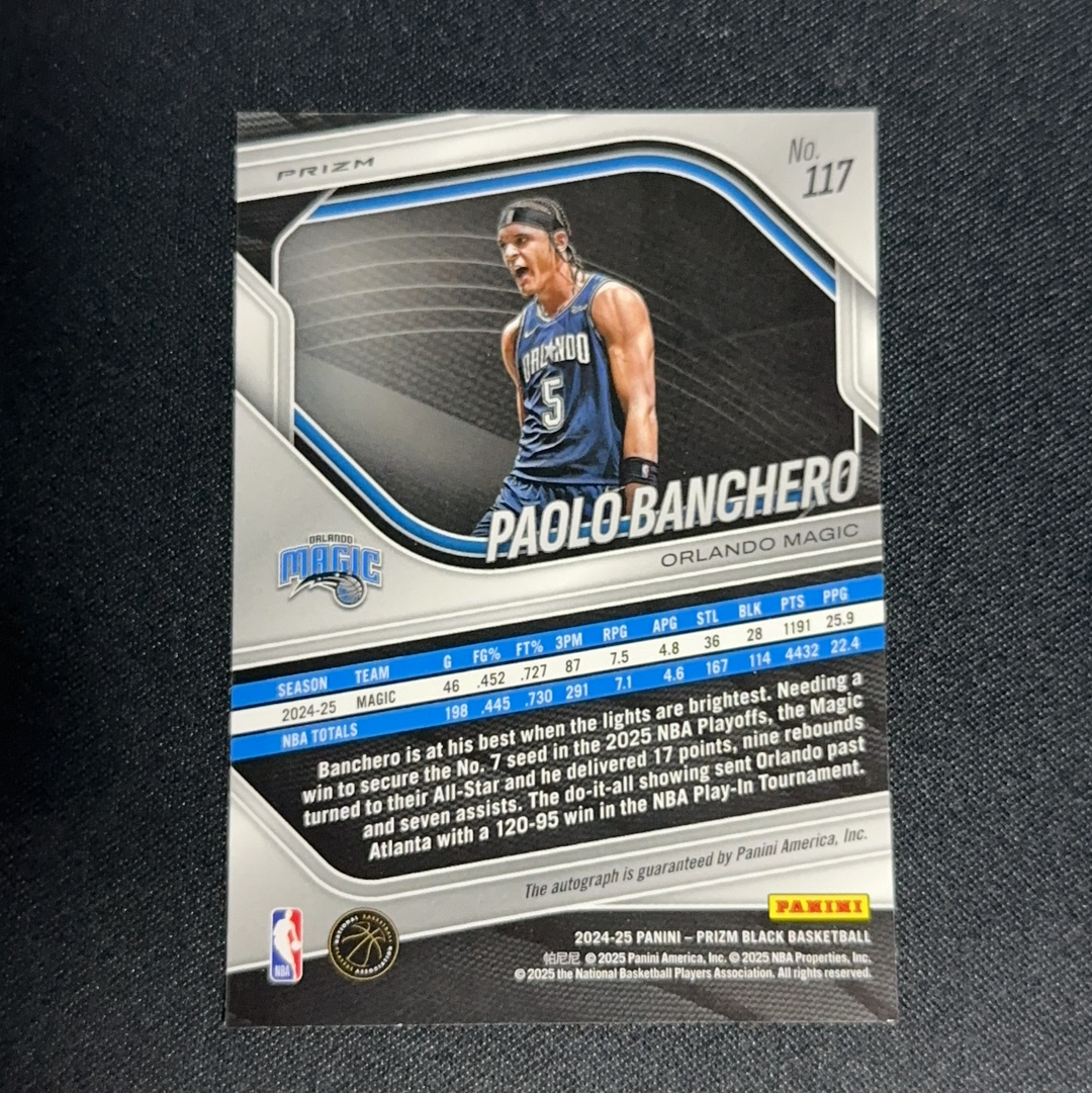 2024-25 Panini Prizm Black Paolo Banchero pz 保罗 班凯罗 班切罗 银折签字 base签 卡品如图 魔术 状元 当家球星 超巨 全明星