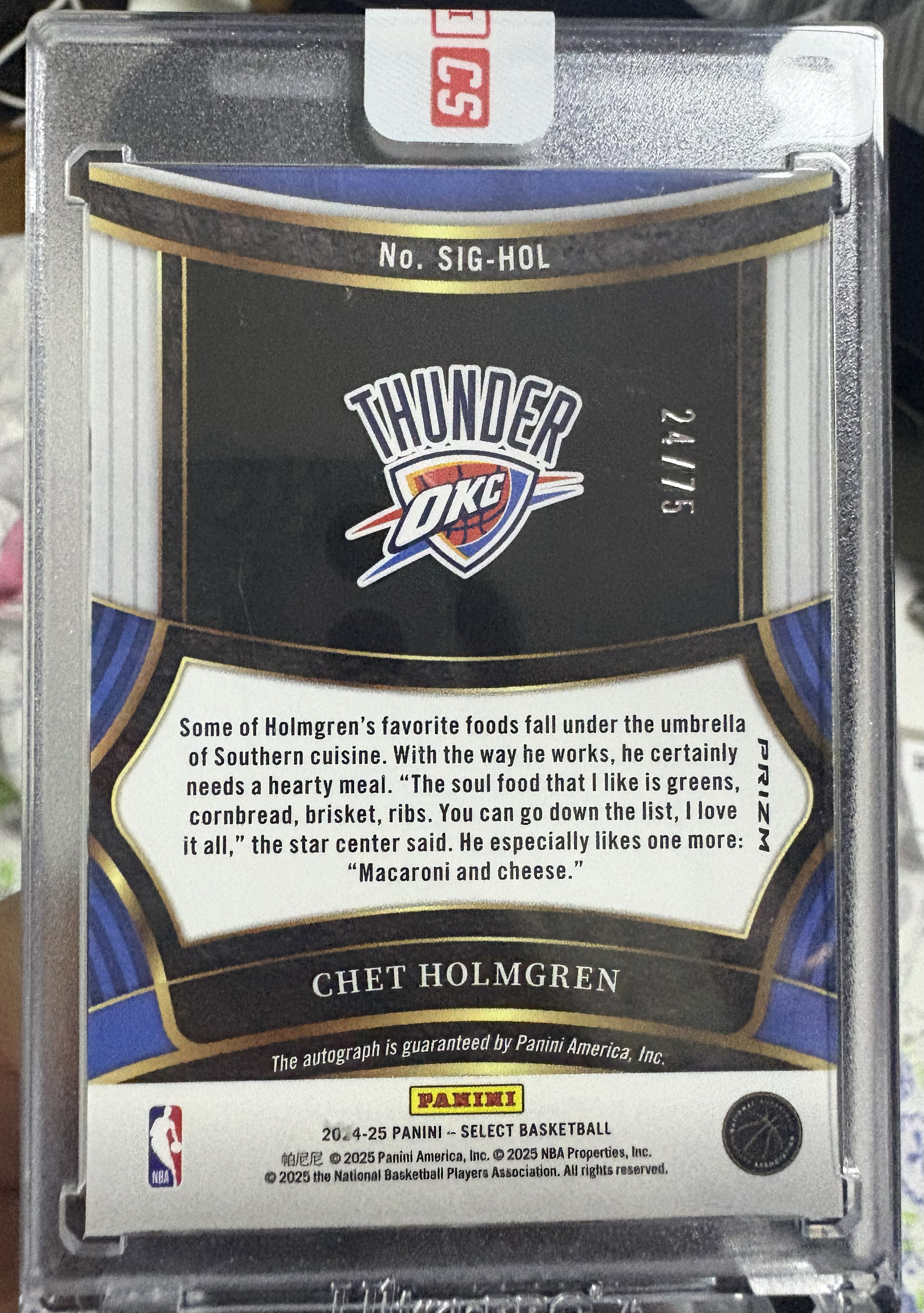 2024-25 Panini Select Chet Holmgren 雷霆 切特 霍姆格伦 /75编 紫折 签字 签名 折射 原封砖 交换 卡品如图