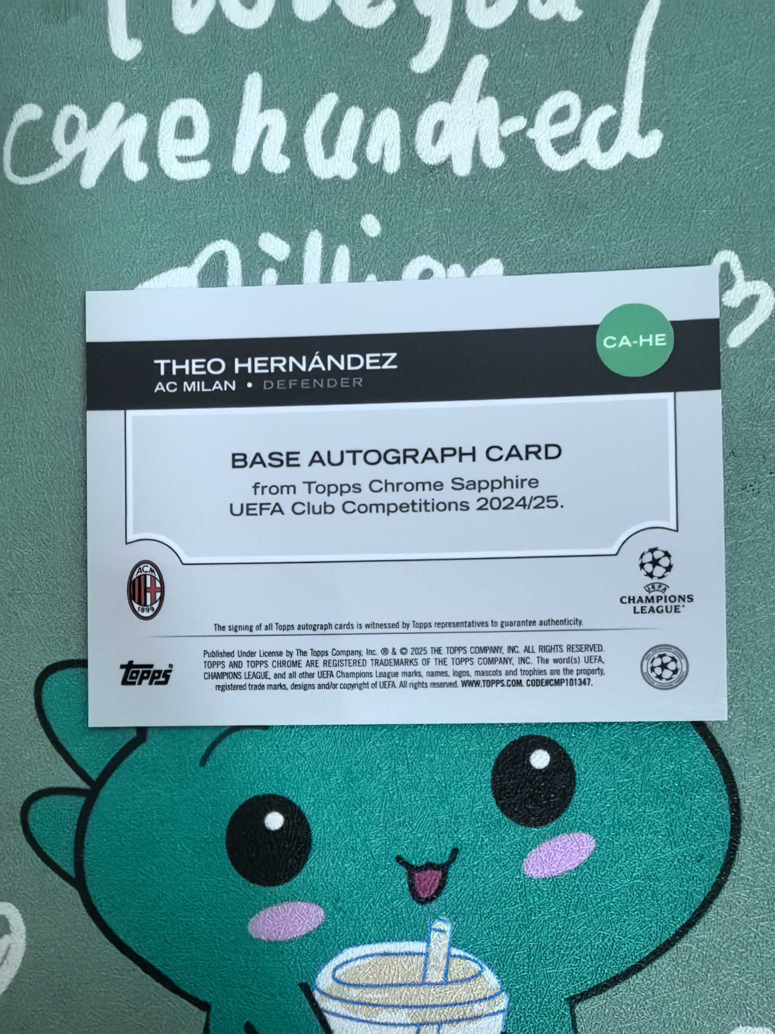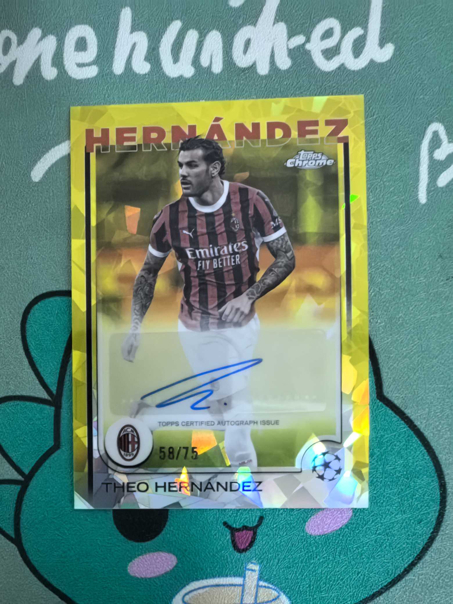 2025 Panini Topps Chrome Theo Hernandez 欧冠TC 蓝宝石 AC米兰 特奥 埃尔南德斯 黄碎冰折 签字 58/75编 细节如图 收藏必备
