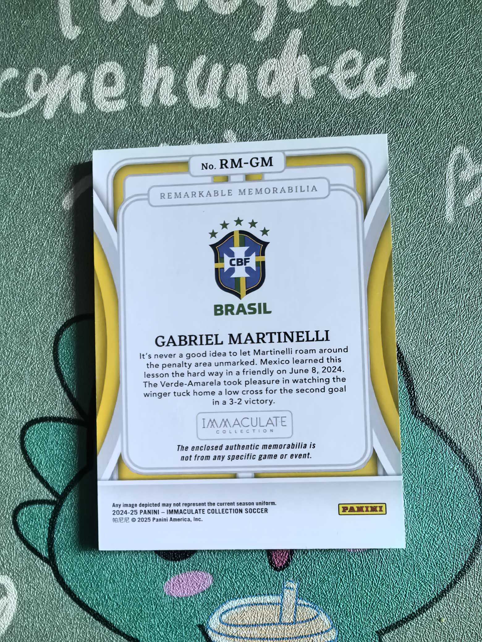 2024-25 Panini Immaculate Gabriel Martinelli 爱咪咪 加布里埃尔马丁内利 24/65编 球衣物料切割 小窗 巴西 收藏必备