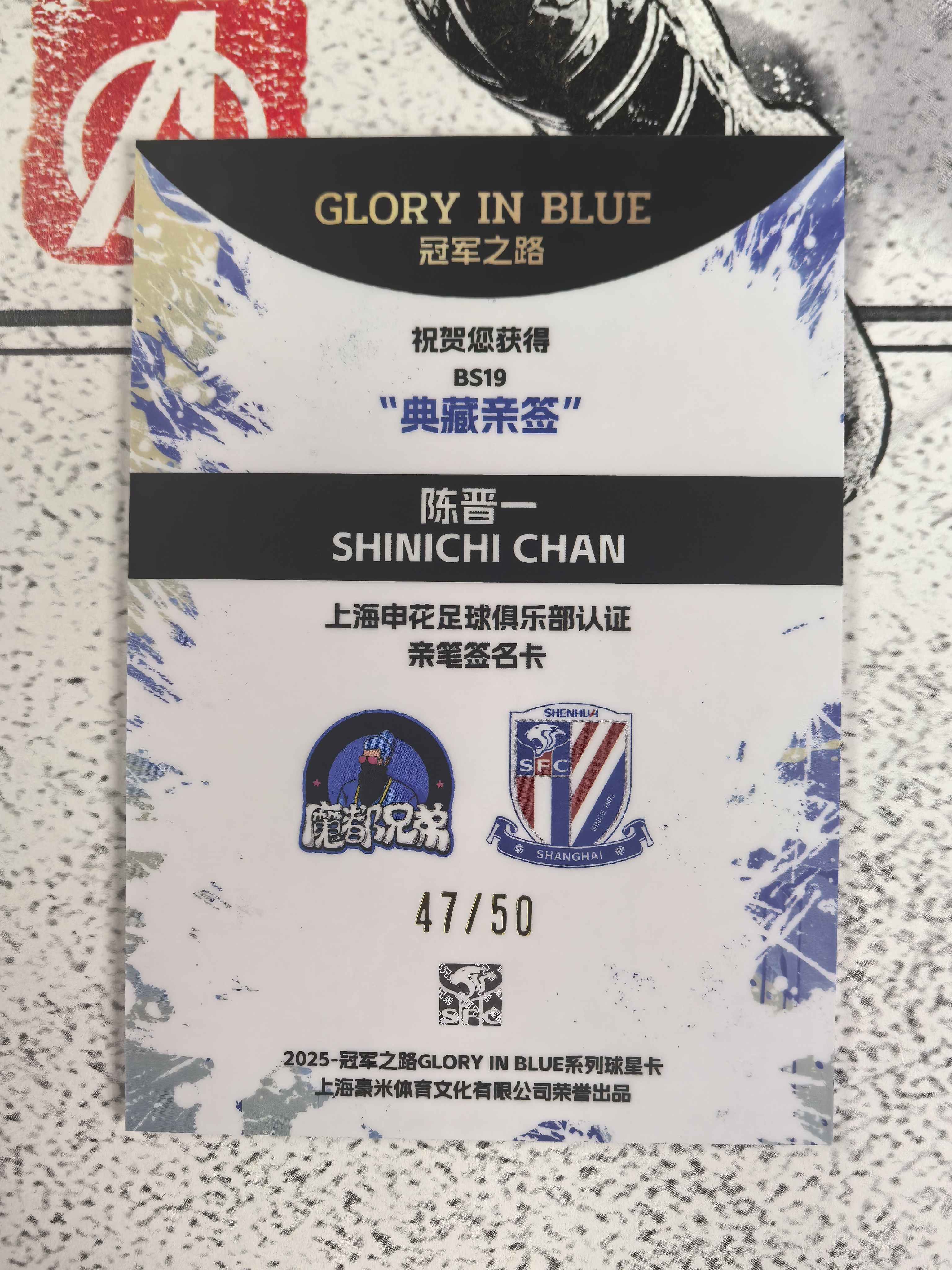 2025 上海豪米体育文化有限公司 申花冠军之路 Chan Shinichi 陈晋一 50编 签字 卡签 典藏亲签 超低编 收藏凑套必备 XE03A 【西门拍卖】