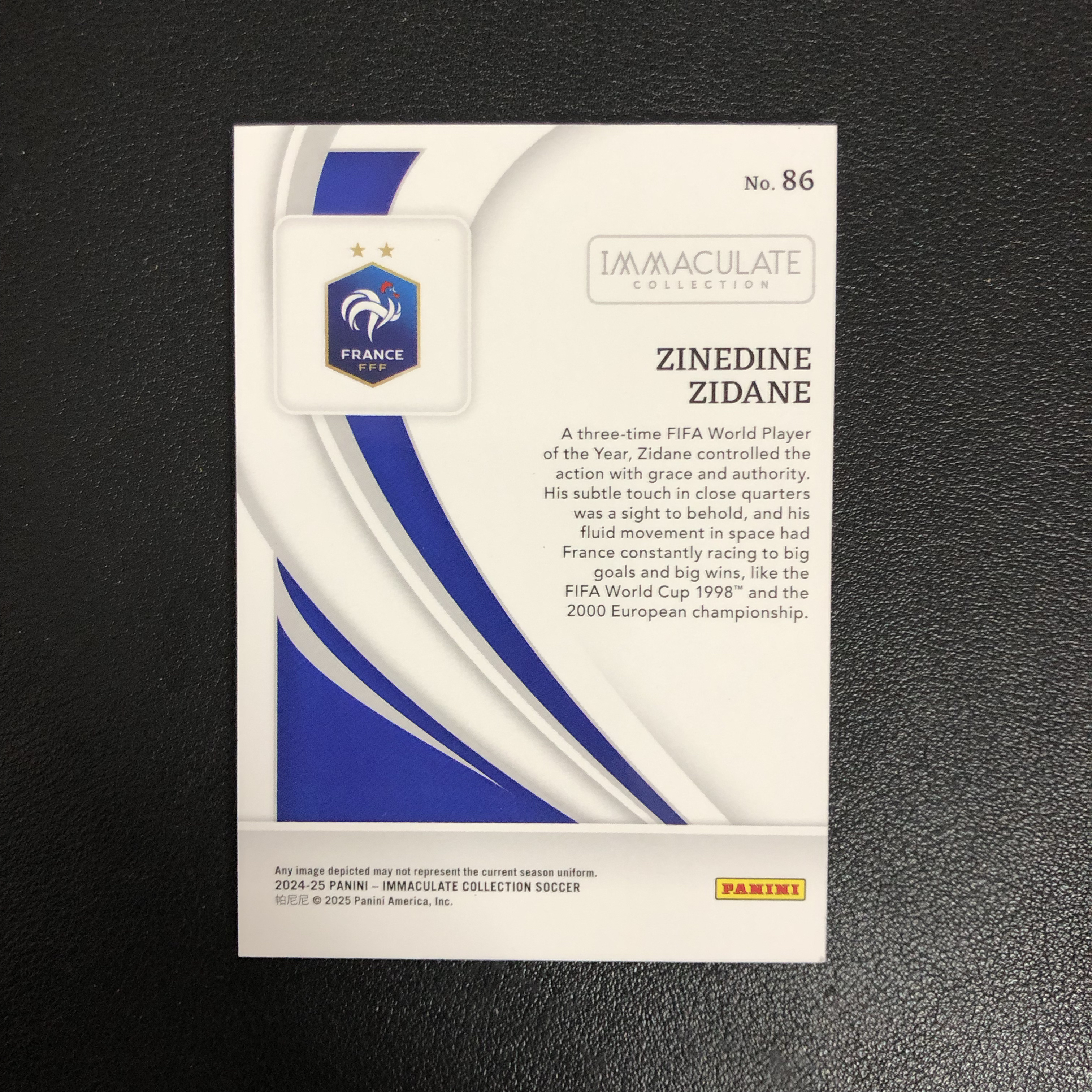 2024-25 Panini Immaculate Zinedine Zidane 爱咪咪 齐达内 23/25编 蓝平行 colormatch 蓝配蓝 base 皇家马德里 法国 卡品如图(wzx