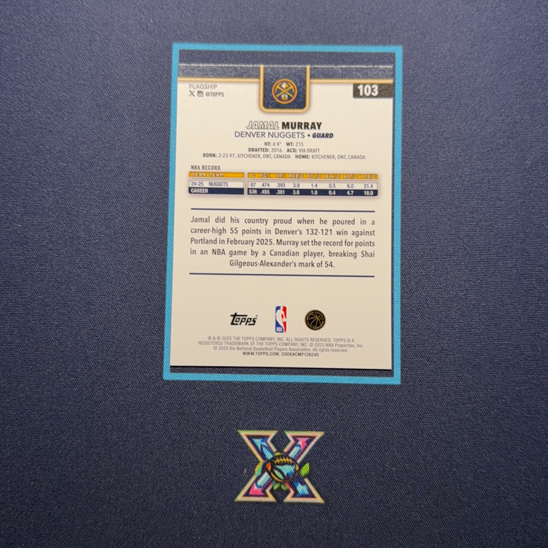 2025-26 Topps flagship Jamal Murray ssp 掘金队徽折 team logo大比例口曼巴 穆雷 好人 ebay有价 设计超帅 收藏投资必备
