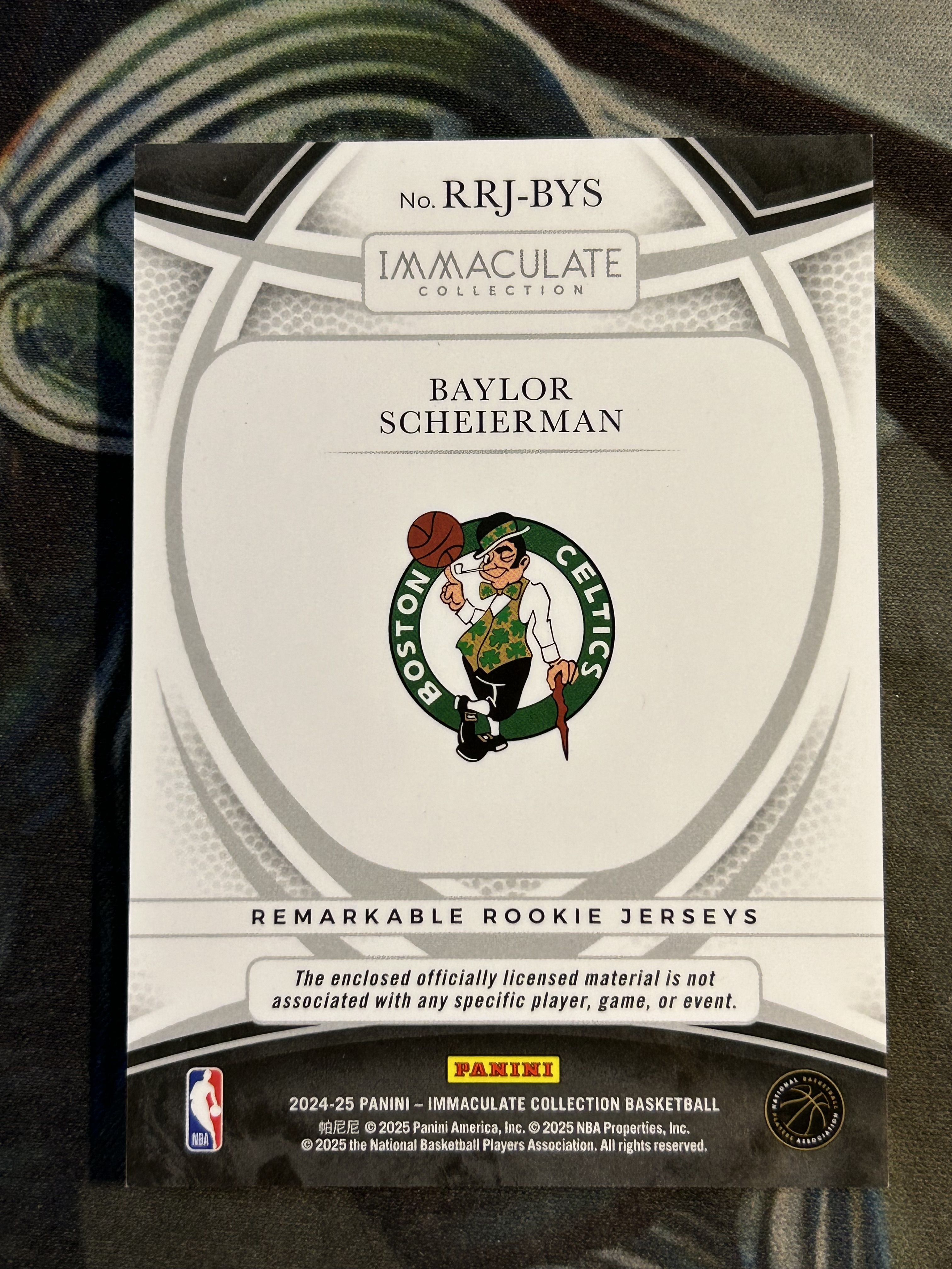 2024-25 IMMACULATE RC 新秀 球衣PATCH实物 限量/75编 BAYLOR SCHEIERMAN 贝勒·沙伊尔曼 凯尔特人 (品见大图)《苏州卡通》Z【MJ】