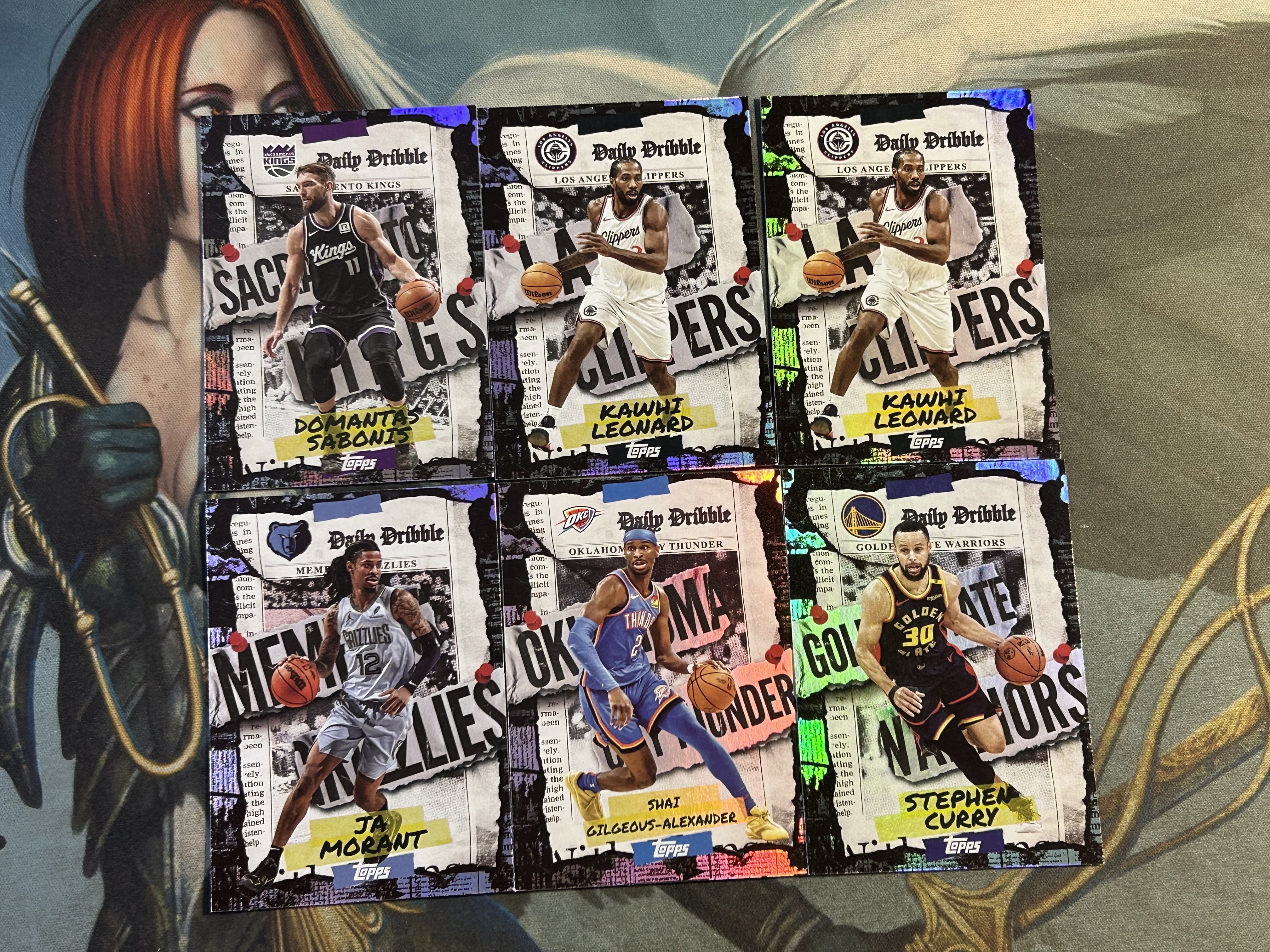 2025-26 TOPPS Dailp Dribble 报纸特卡 折射亮面 6张一起 STEPHEN CURRY 库里+SGA 亚历山大 莫兰特 卡哇伊 等 (打包不保品)《苏州卡通》Z【MJ】