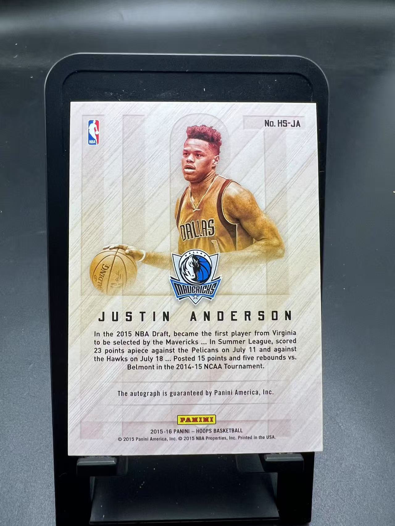 2015-16 Panini Hoops Justin Anderson RC 【EC】 独行侠 新秀 贾斯汀 安德森 签字 hot特卡 紫尖37