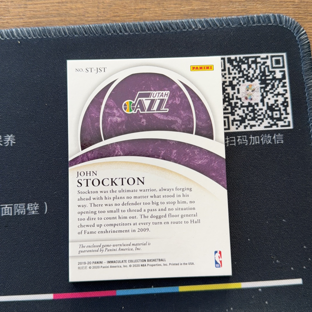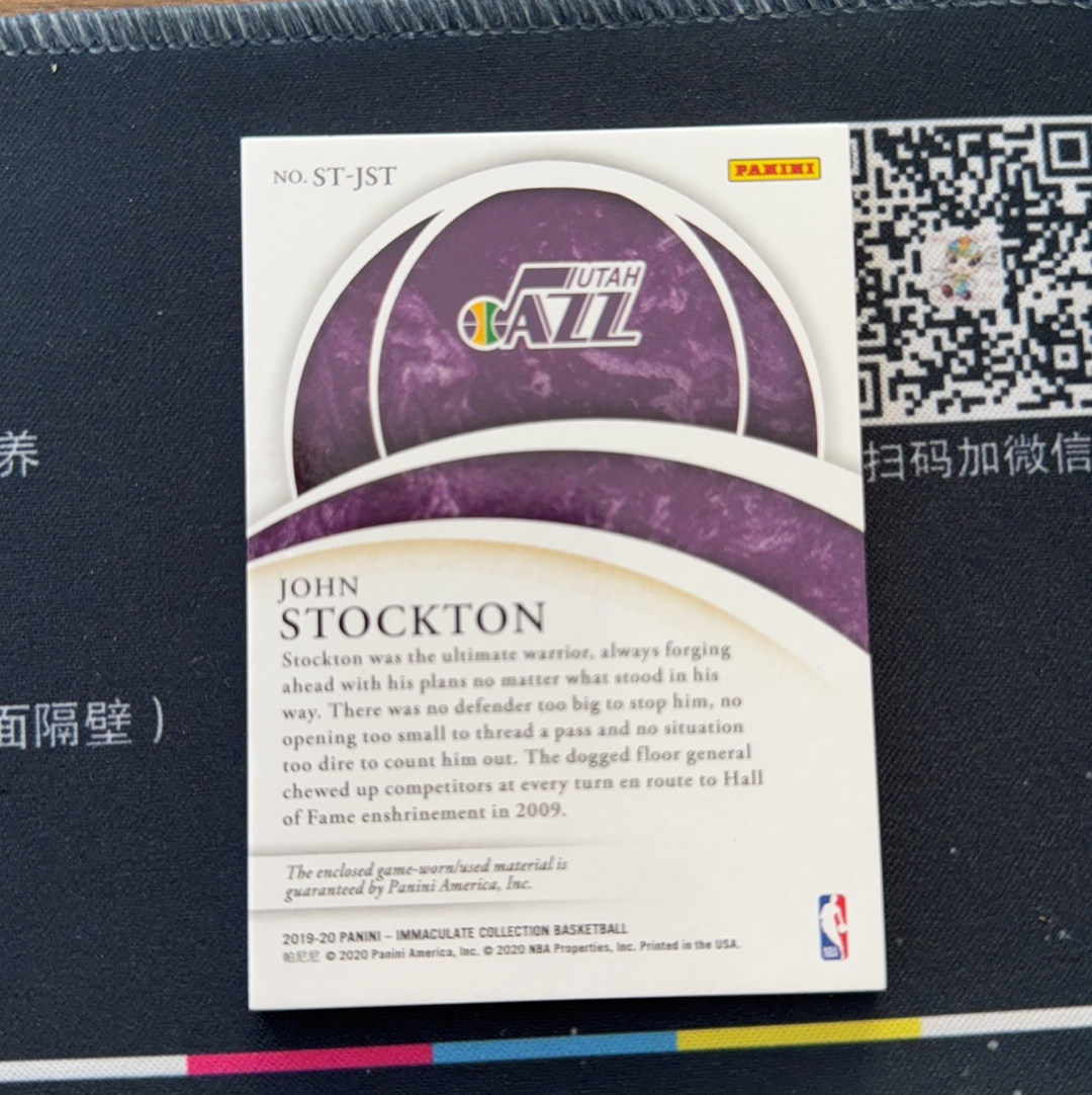 2019-20 Immaculate John Stockton 爵士传奇 斯托克顿 34/49编 Patch 球衣 GU落场实物 专收必备