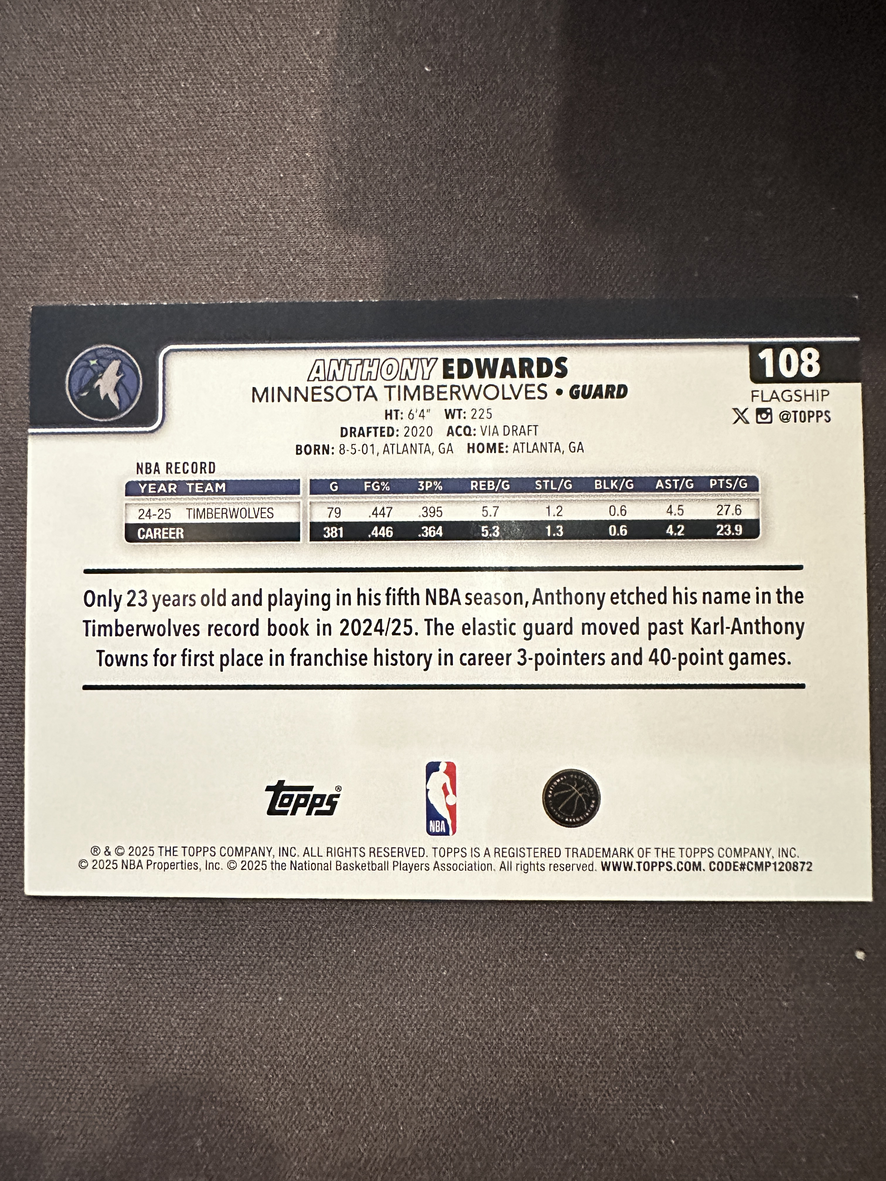2025-26 Topps Flagship Basketball Anthony Edwards Topps篮球 安东尼 爱德华兹 华子 森林狼 带编 250编 紫折 折射 超巨 未来可期 卡品如图