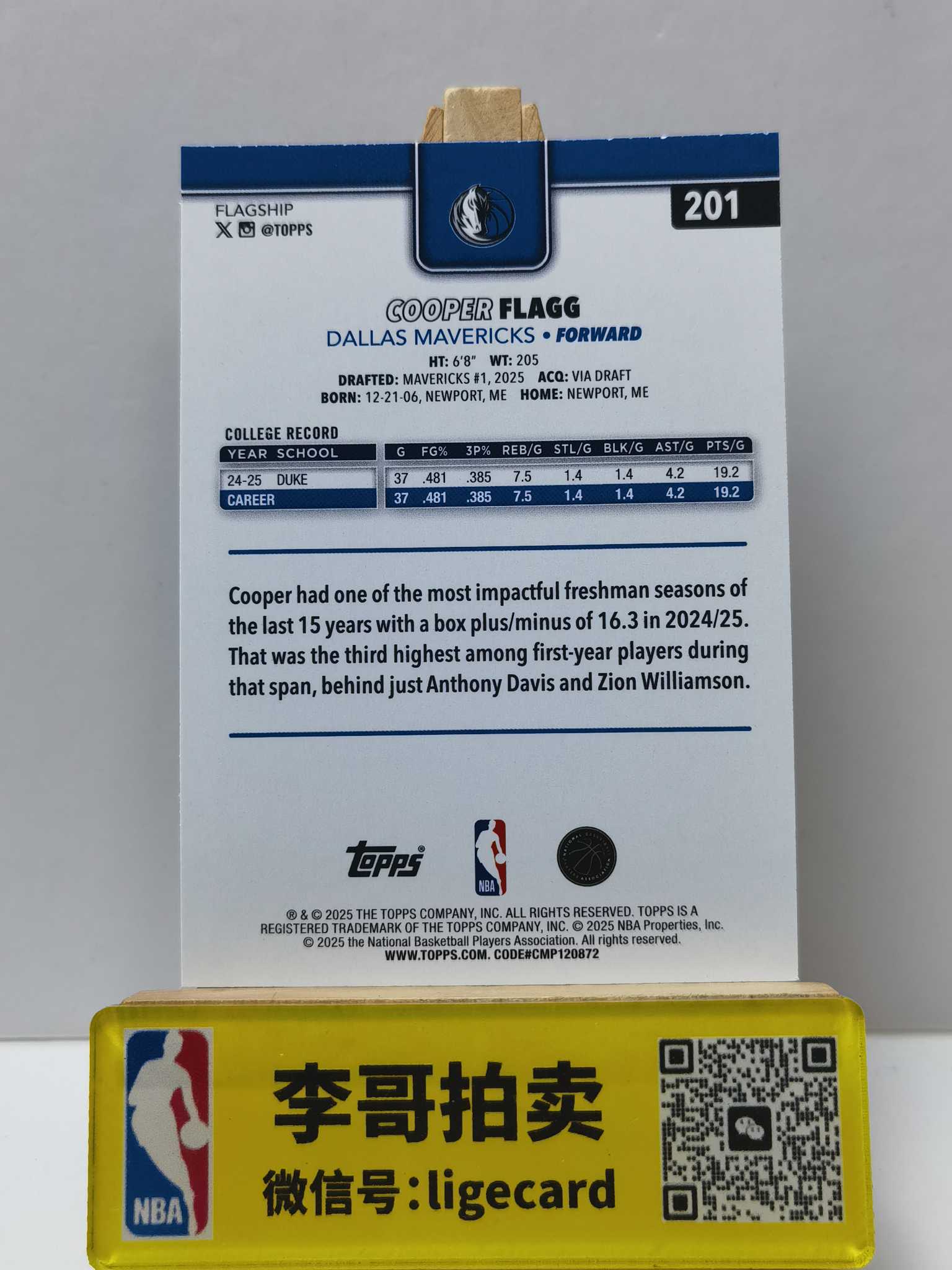 2024-25 Topps Flagship Cooper Flagg 【李哥代卖】库珀弗拉格 RC新秀 独行侠 Ozlshh