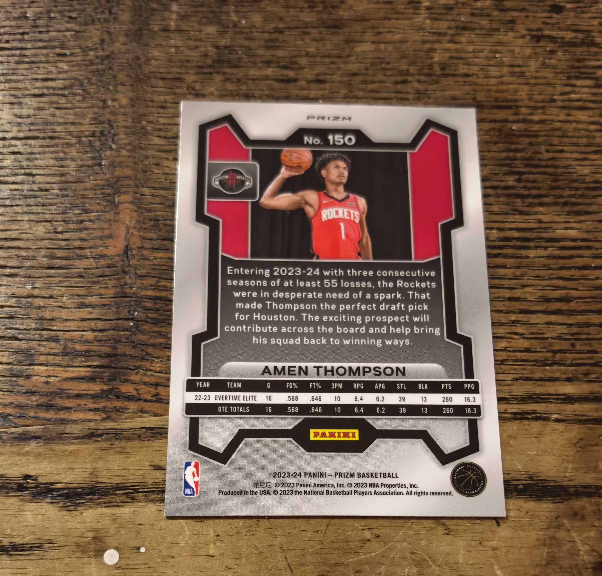 2023-24 Panini Prizm Amen Thompson RC pz 火箭 新秀 阿门 汤普森 奥萨尔 兄弟 粉碎冰折 银折 折射 文班亚马同届