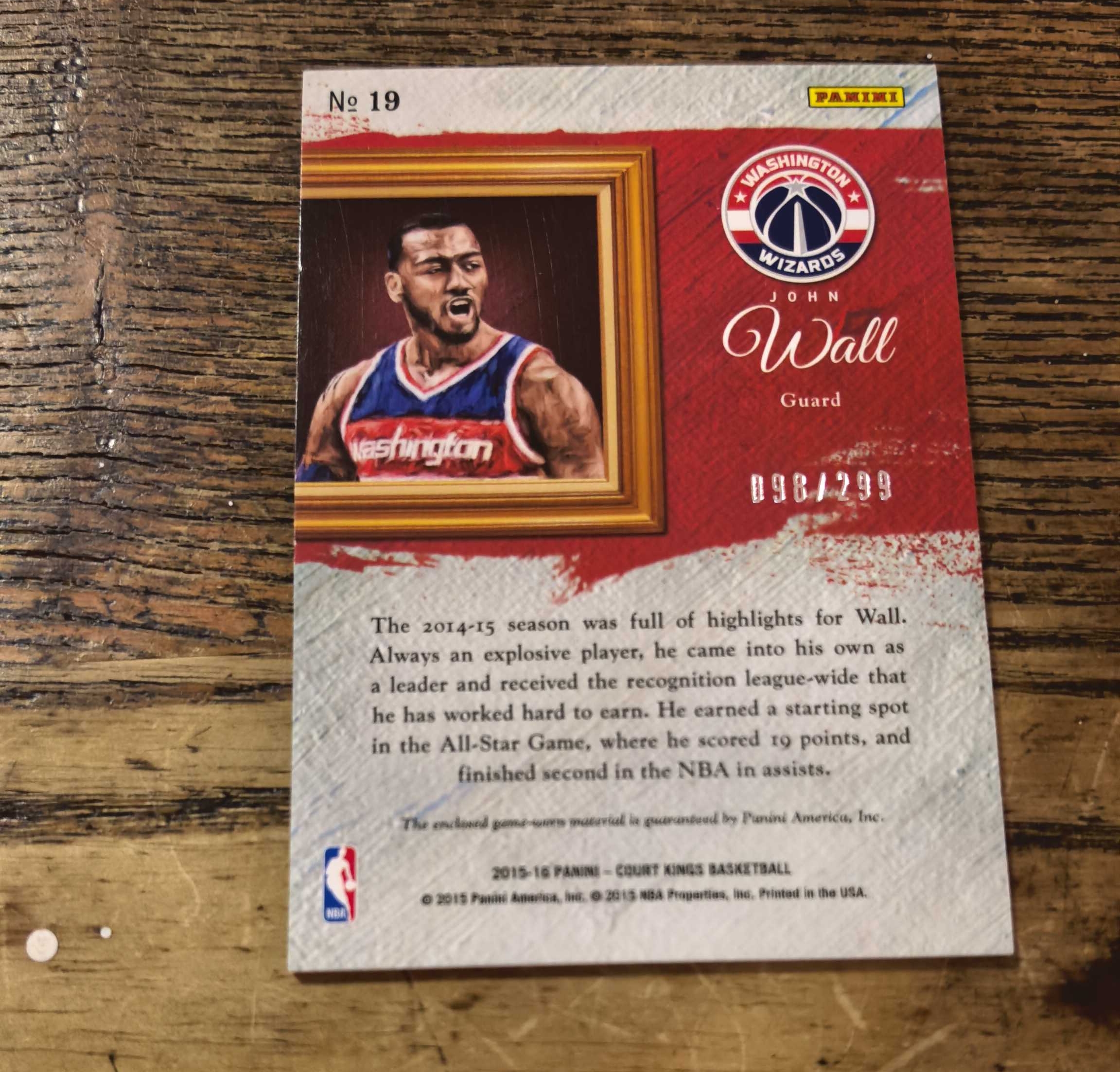 2015-16 Panini Court Kings John Wall 油画 奇才 状元 约翰 沃尔 墙哥 球衣切割 物料 比赛亲穿 299编