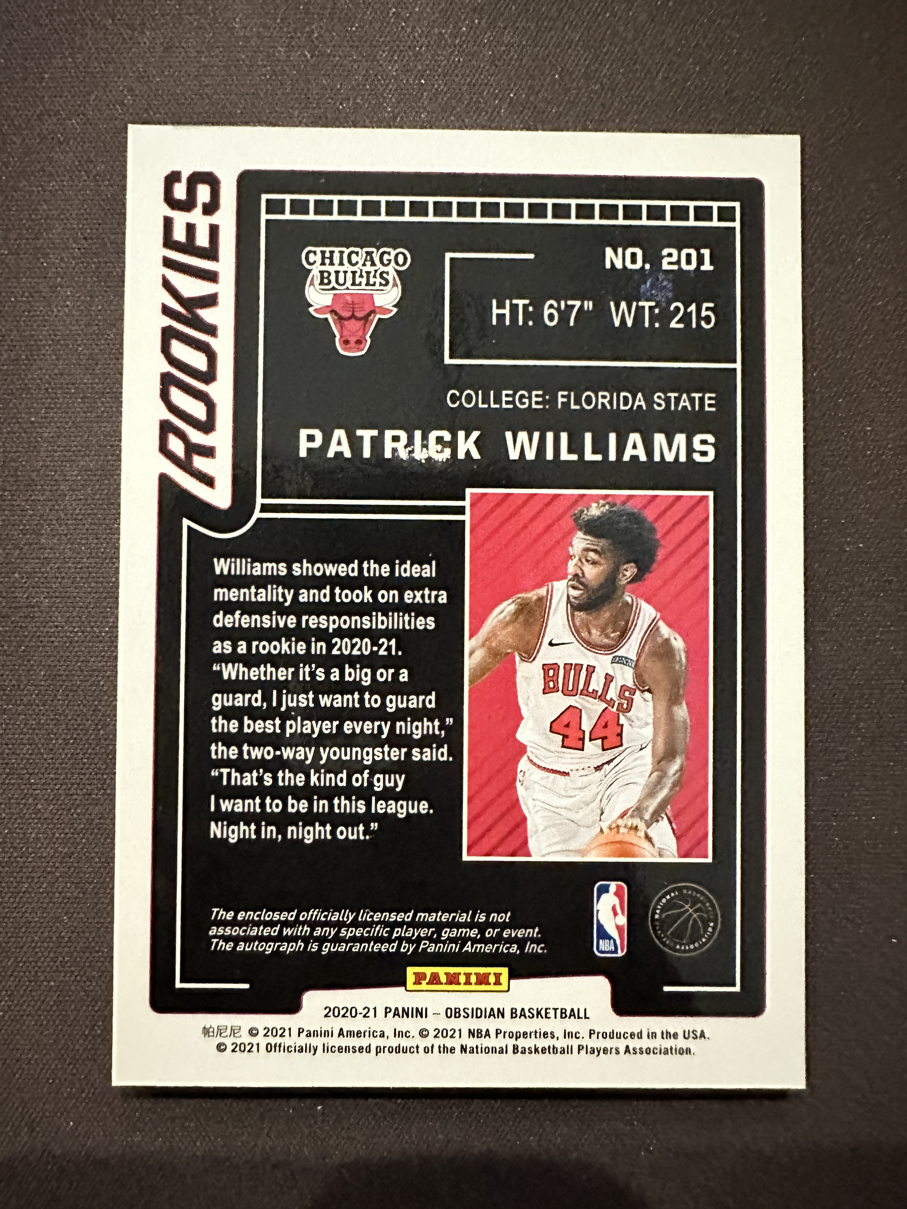 2020-21 Panini Obsidian Patrick Williams RC 黑曜石 帕特里克 威廉姆斯 公牛 新秀 RC 物料 patch 签字 卡品如图 收藏凑套必备