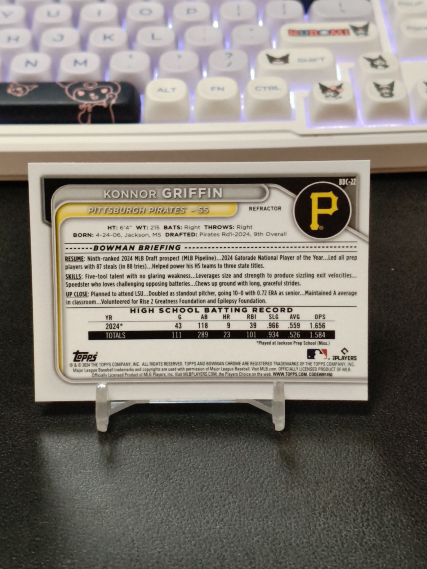 【浩行拍卖 截标预付82%】2024 topps chrome bowman konnor griffin 康纳 格里芬 1st 银折 折射 专收必备 瑕疵看图「仕奇56」1109G01兿