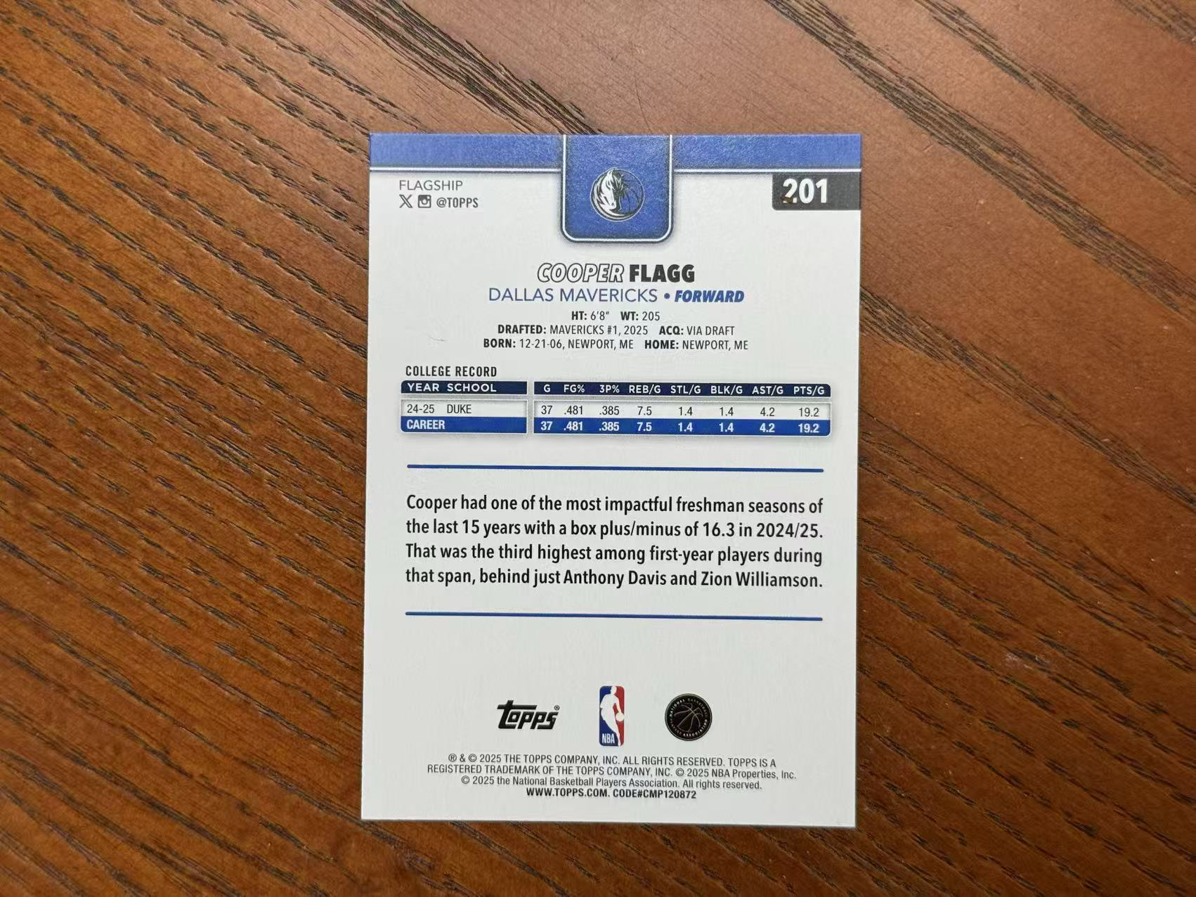 2024-25 Topps 稀有 Cooper Flagg RC 【Bid6拍卖】2025-26 FlagShip 旗舰系列 新秀RC 库珀 弗拉格 独行侠状元秀 普卡 Base