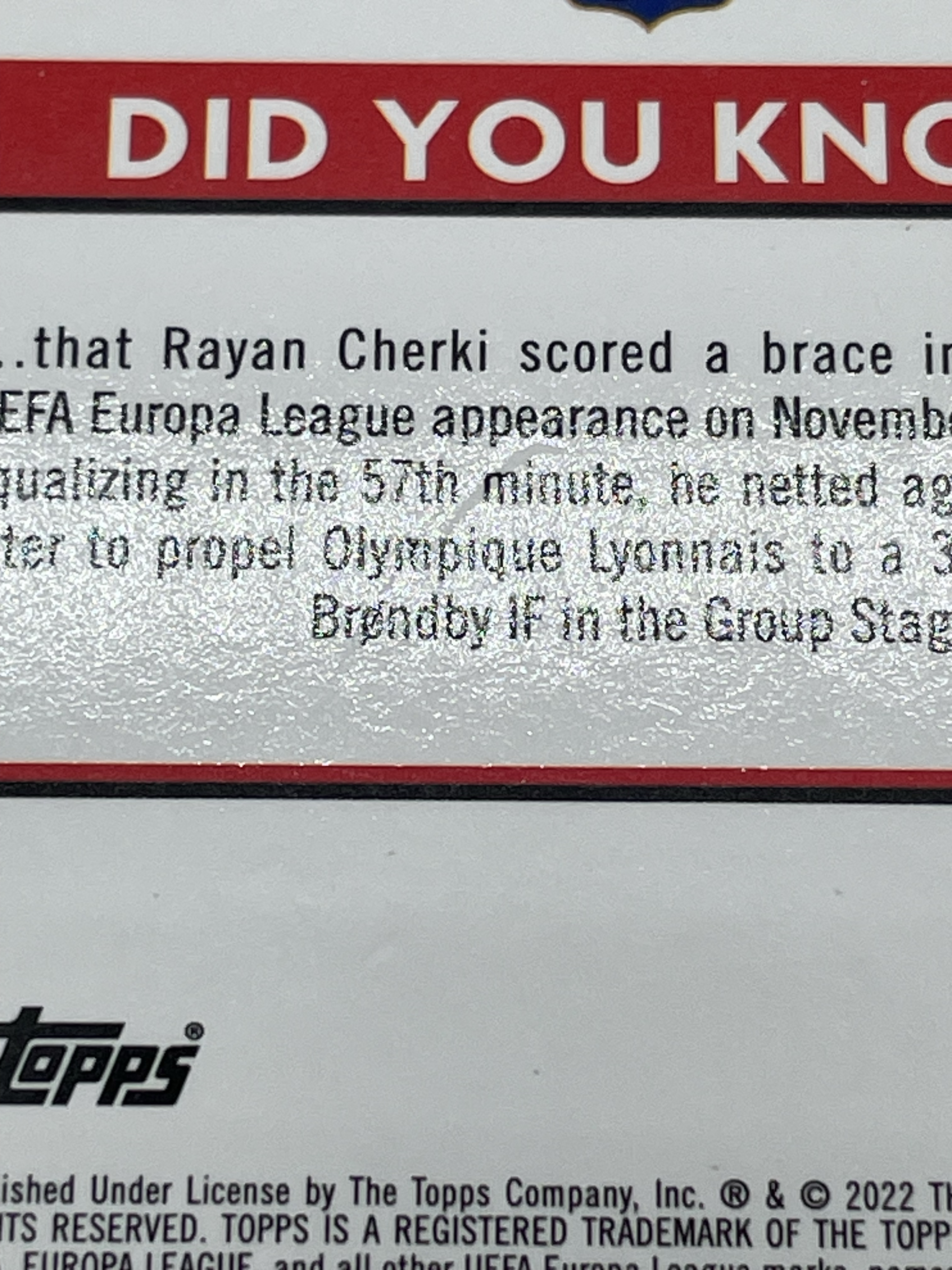 2022 Topps Merlin chrome Rayan Cherki RC 切尔基 谢尔基 青棱镜折 梅林 曼城 里昂 法国🇫🇷 天赋怪 新秀年 唯一正系列 卡品如图
