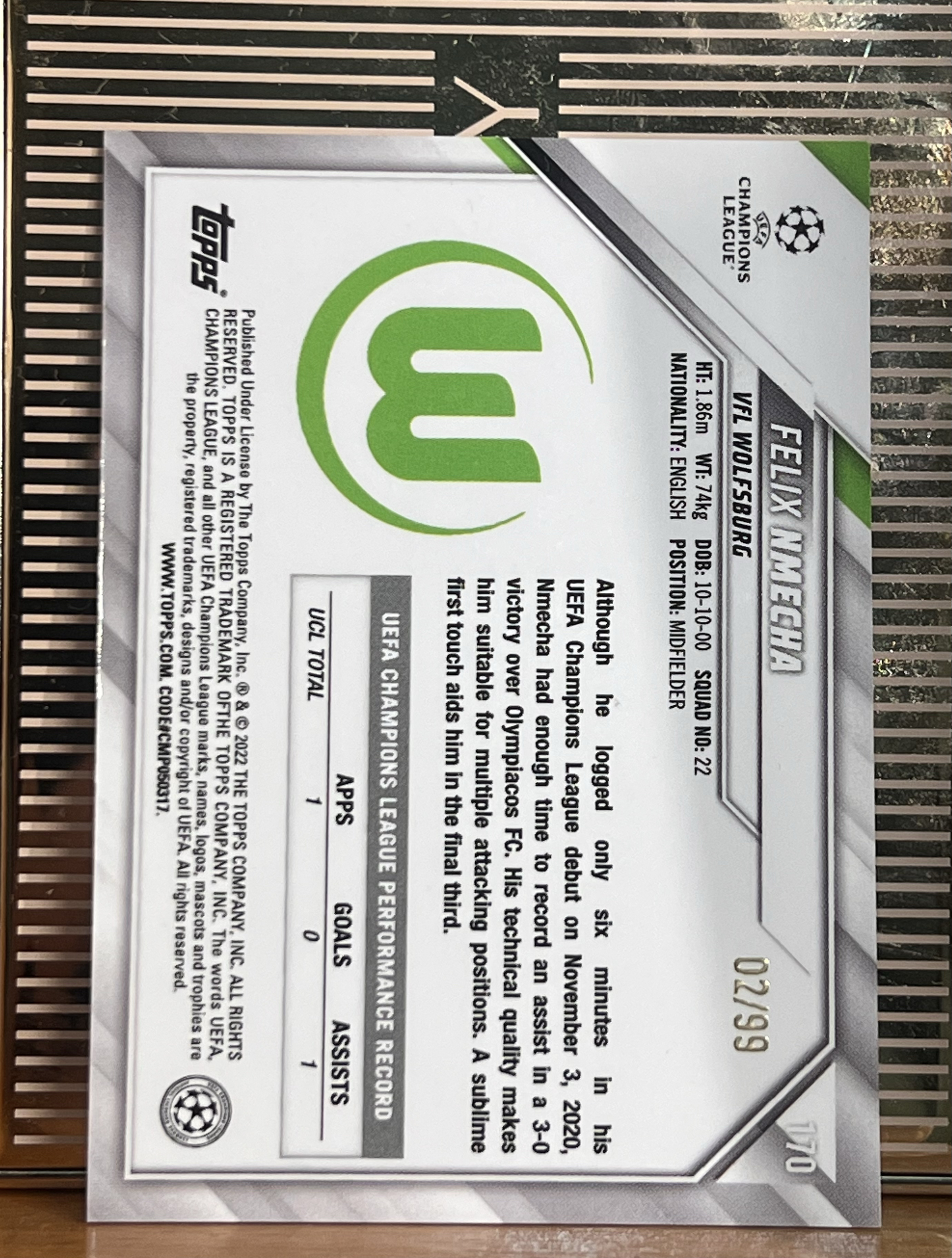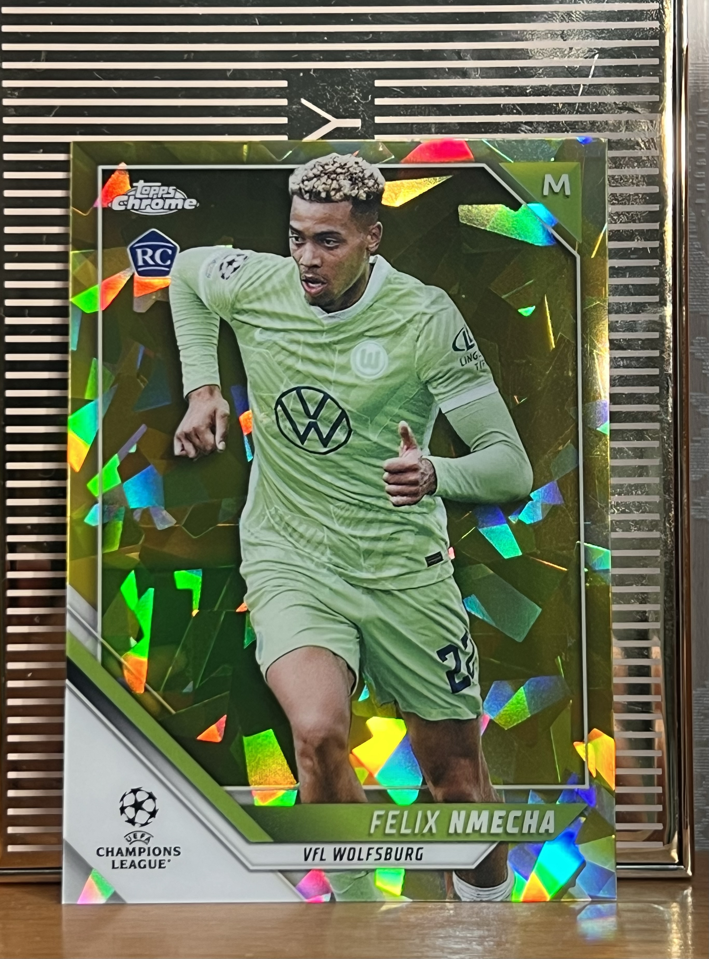 2021 22 Topps Chrome Felix Nmecha 欧冠 蓝宝石 沃尔夫斯堡 多特蒙德 恩梅查 99编 新秀 RC 黄折 碎冰折