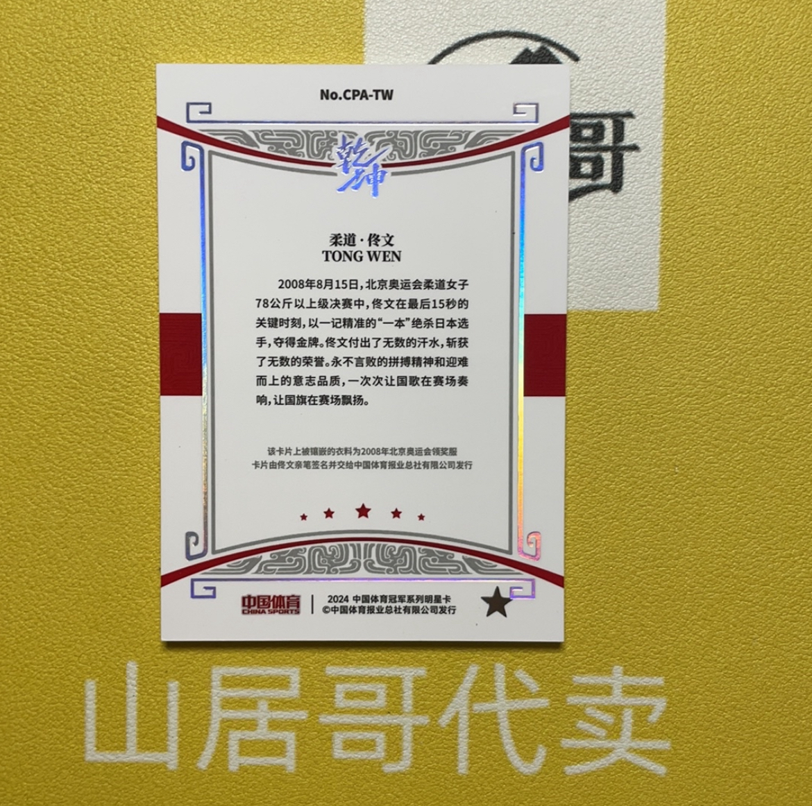 【山居哥代卖】承接代卖 请阅读后竞价 大额预付85%-90%!卡到预付!截标预付!闪电回款! 微信:617061230 1.本店企业商户,线上支付,直接付款给平台!付款后一定站内信留言! 2.为了卡片安全,只发顺丰陆运,超过1000元建议顺丰到付实价保价,如因未保价快递中有任何问题导致卡品受损遗失等买家联系快递处理赔付,本店也会协助您处理相关问题,一律发陆运,如需发空运站内信留言即可。一般一周发两次货,会根据付款顺序3日内发出。 3.卡品如图,一般通行品以上,如无说明则为通行品,如有瑕疵会提供文字说明。国宝imm等系列厚卡,老卡有白边白角属于正常卡品,镜面卡签有小划痕属于正常通行品相,评级卡砖上的划痕破损不属于品相问题,一定把拍卖图片看清,折射系列不保证金标,要评级追求金标者请直接购买金标。拍后请于3日内付款,5日内不付款将直接申请投诉封号. 4.需要改地址的请付款前在订单里改好,只发默认地址。 5.重要的事情说三遍:本店不支持累计,本店不支持累计,本店不支持累计,不接受任何转让转拍合并发货的卡,买家若转让可将卡发回后自行处理。卡淘留言看到后会第一时间给您回复。联系方式:wx617061230