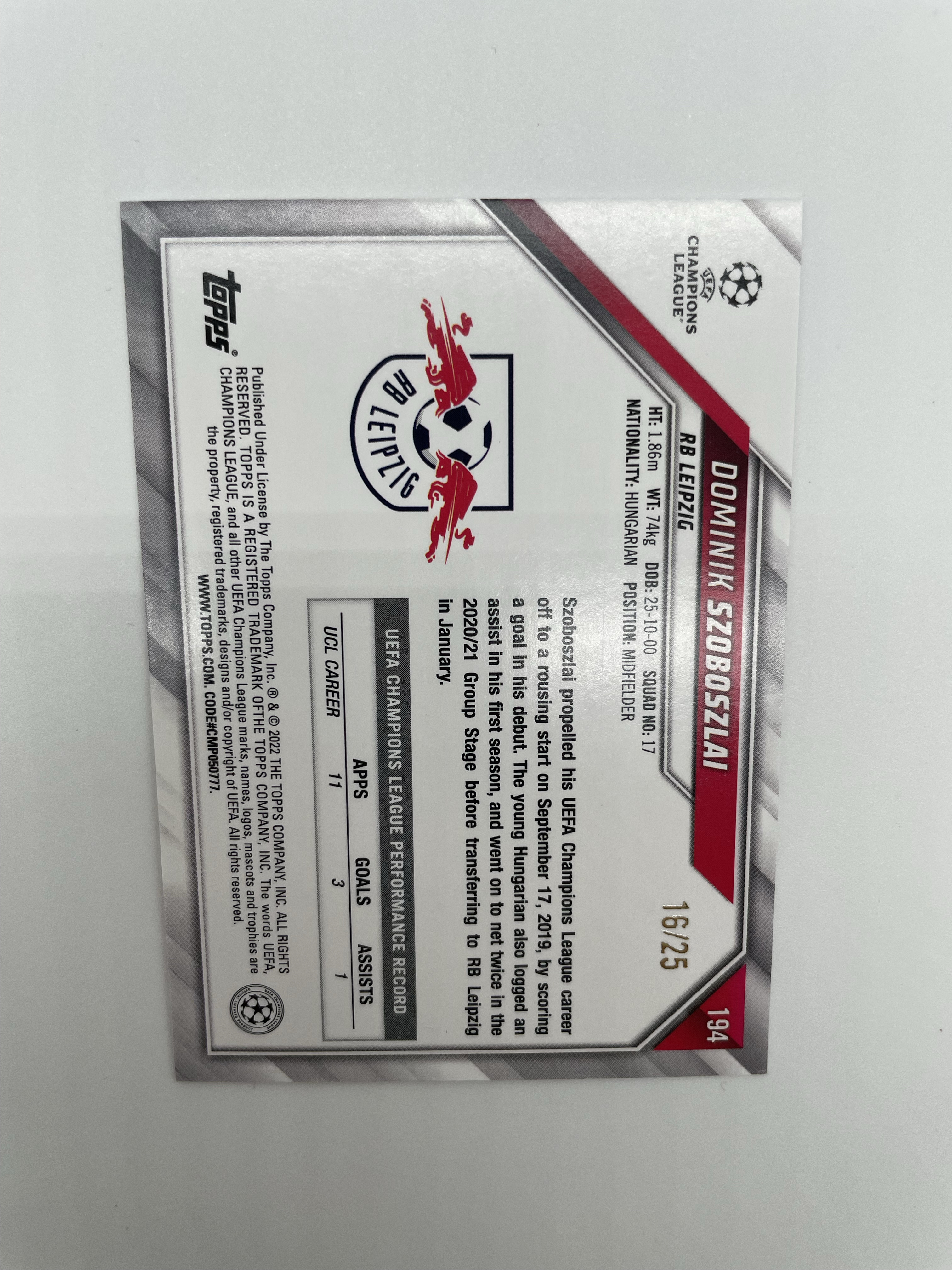 2022 Topps Chrome Jade Dominik Szoboszlai 索博斯洛伊 16/25 25编 碧玉 稀有独占 利物浦 莱比锡 萨尔茨堡 匈牙利🇭🇺