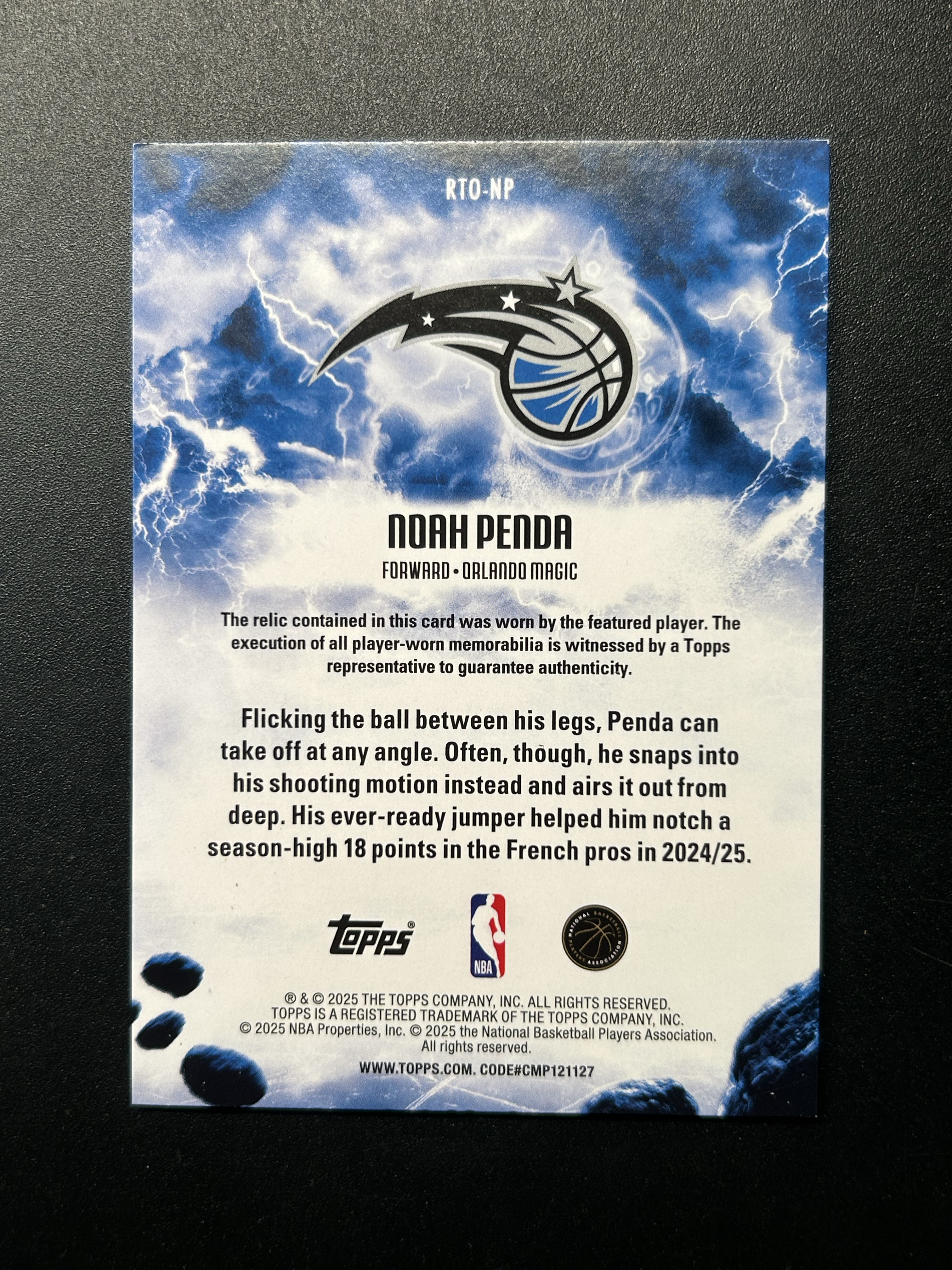 2025 Topps 新秀 诺阿·彭达 NOAH PENDA 魔术 RC 球衣切割 物料 特卡 物料画龙点睛 像一只眼睛 卡品如图 介意勿拍