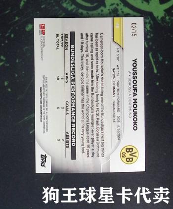 【狗王球星卡代卖规则】:1、关于卡片:所有卡片均为卡主委托本店代卖,所有图片均为实拍图。2、关于卡品:印刷线、胶印;厚卡白边、白角、毛边;薄卡印刷油口、小程度弯曲等均属出品厂商问题,非人为因素造成,可站内客服获取高清图及视频;默认打包lot卡片不保障卡品。出价即视为接受卡品。重大瑕疵会标注细节,原则上不退货(产生争议可走卡淘流程),如有卡品要求请购买评级卡!3、关于卡具:所有卡片均含卡膜,单价超过100元的卡片会配备卡具,如需购买卡具请站内留言4、关于支付:均为线上支付,请中标卡友于3日内支付,超期本店有权向卡淘发起投诉。5、关于邮寄:所有卡片在付款后3个工作日内均按默认地址发出(如需变更地址,请自行在付款界面变更收货地址),本店默认使用顺丰快递,邮费:湖南省内12;其他省份18,偏远地区一律到付(如需保价请联系客服)(默认首重2KG,LOT超重另计)。6、本店不提供交换板代刮业务,请见谅!