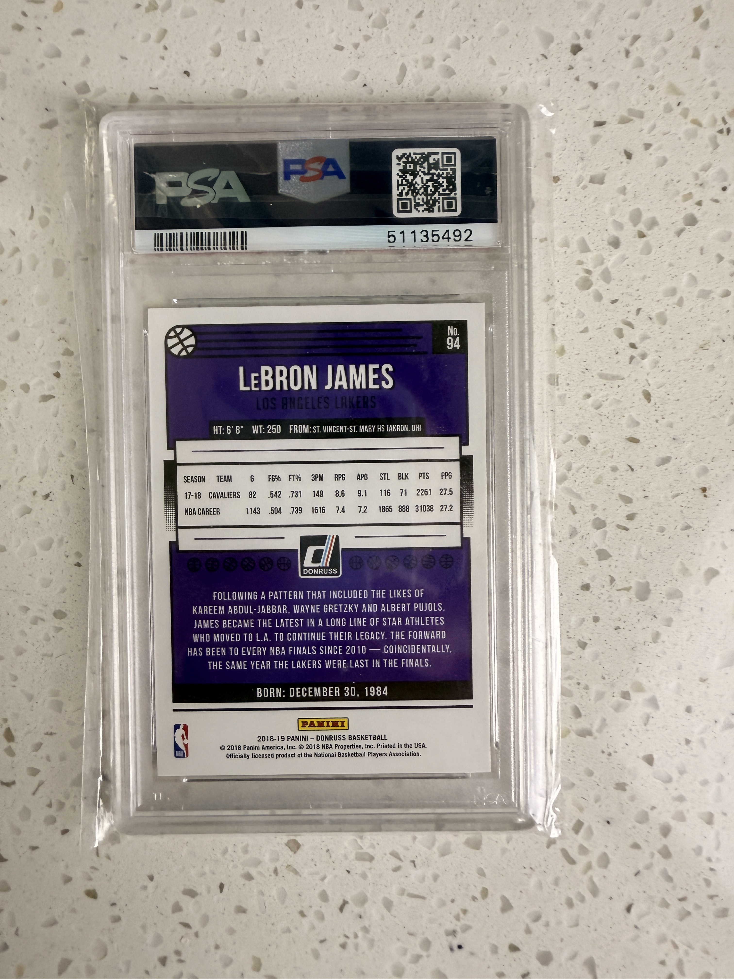 2018-19 Panini Donruss LeBron James 小皇帝 勒布朗 詹姆斯 psa10 满分评级 詹姆斯