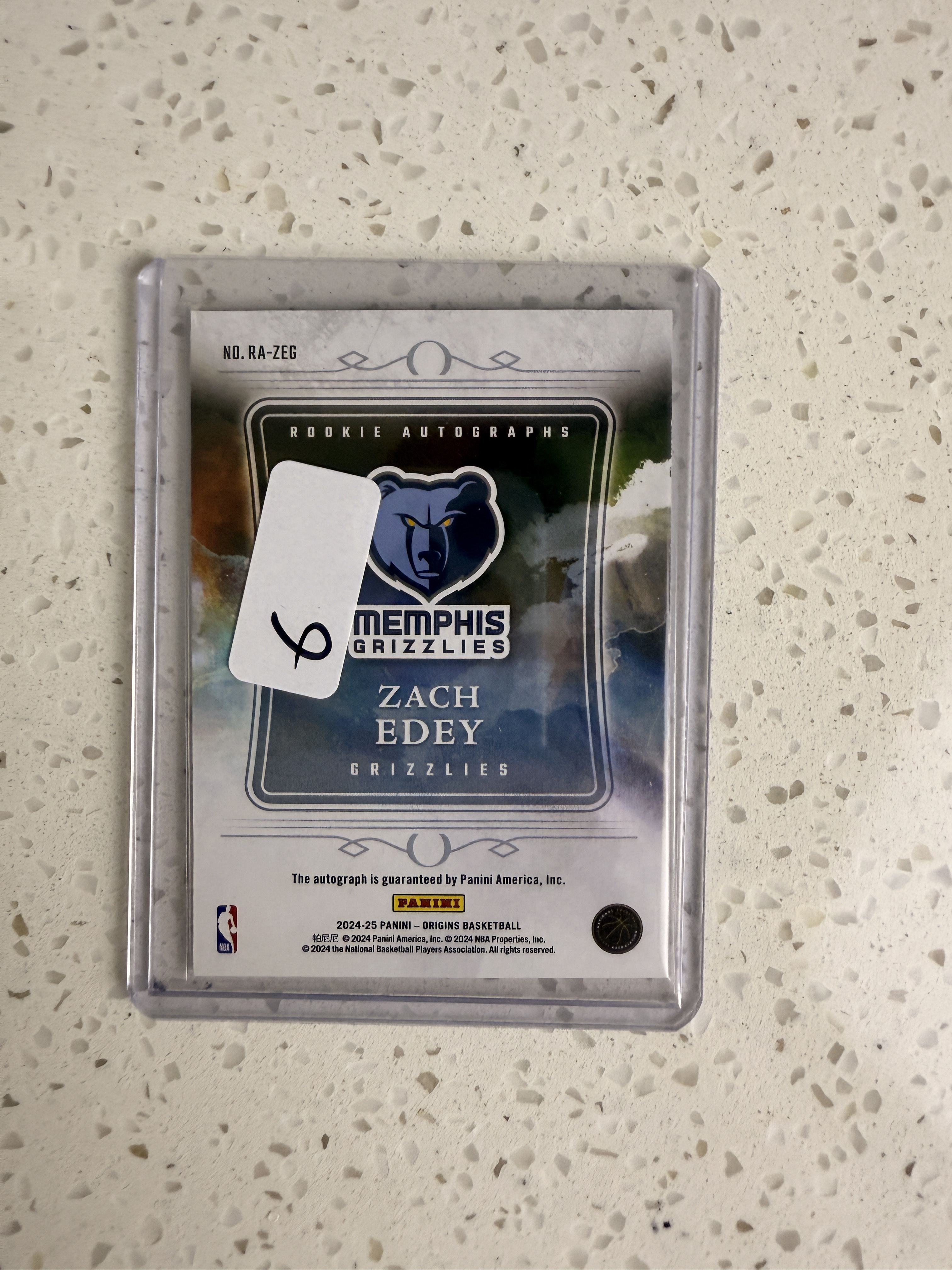 2024-25 Panini Origins Zach Edey RC 灰熊 中锋 新秀 周志豪 签字 卡签 新秀签