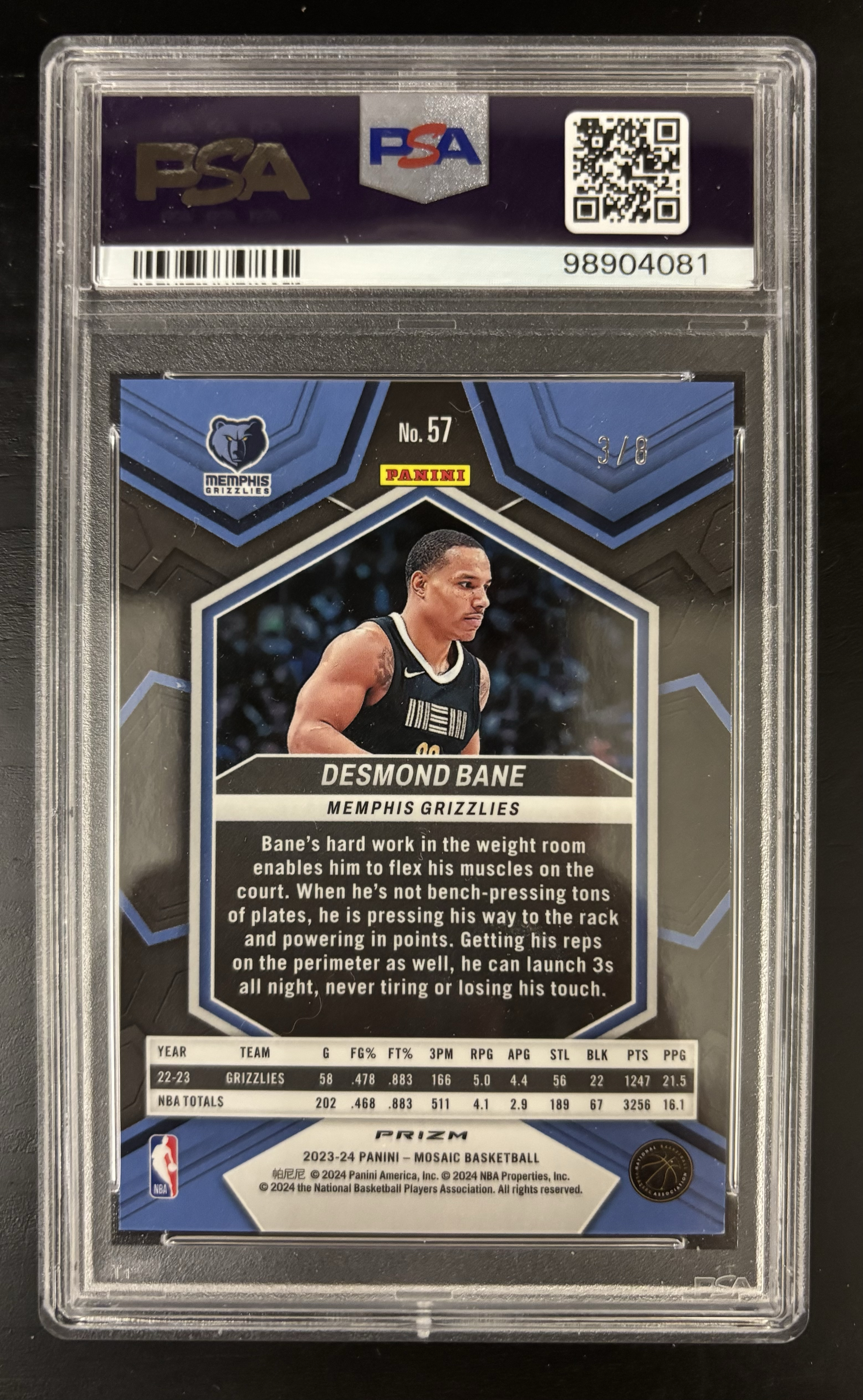 2023-24 Panini Mosaic Desmond Bane 马赛克 戴斯蒙德 贝恩 3/8编 黑金马赛克折 Choice独占 灰熊 PSA 9 评级 魔术 班凯罗 莫兰特 稀有 值得收藏
