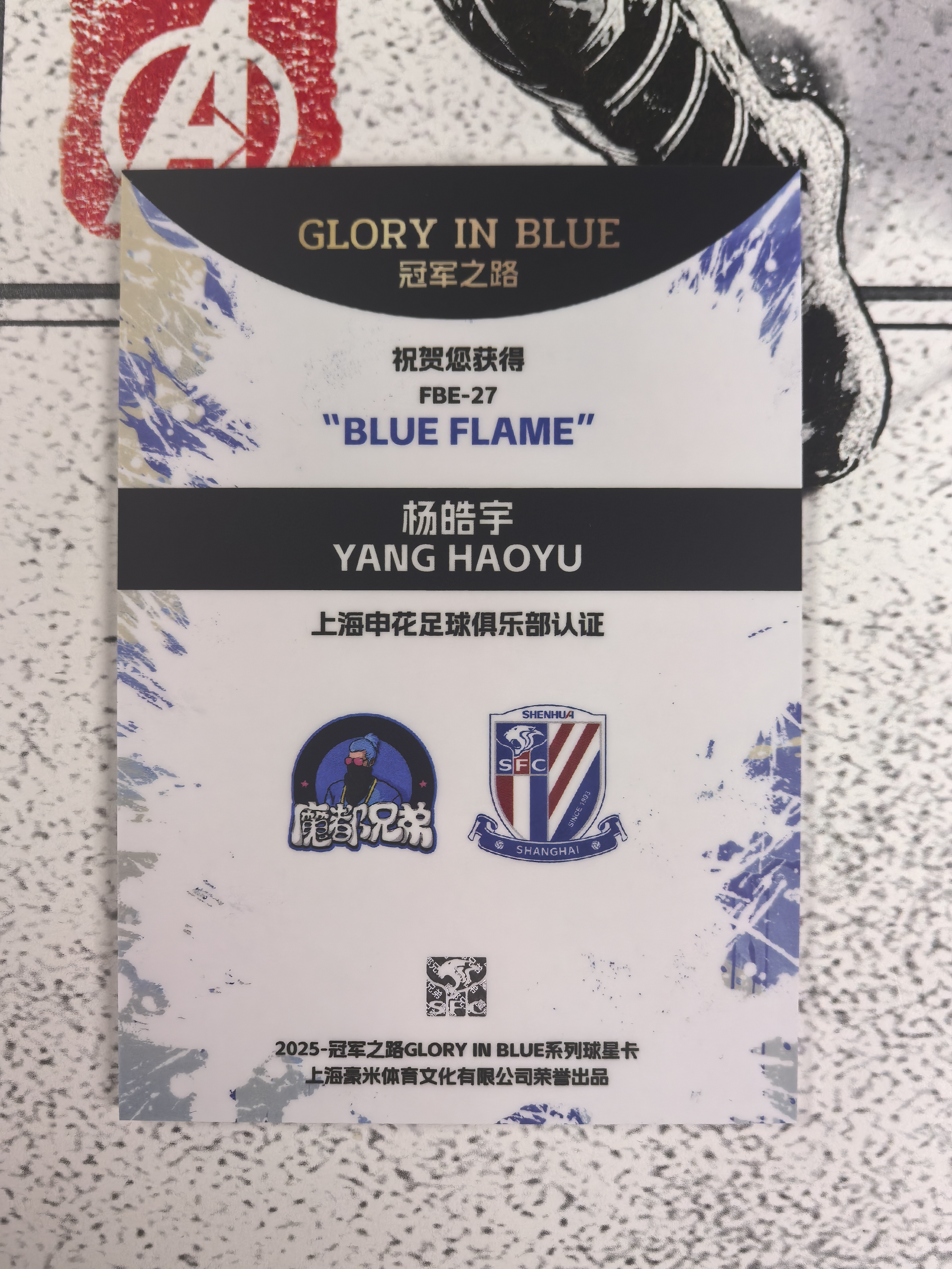 2025 上海豪米体育文化有限公司 申花冠军之路 杨皓宇 RC 新秀 蓝色火焰特卡 blue flame 收藏凑套必备 XE03A 【西门拍卖】
