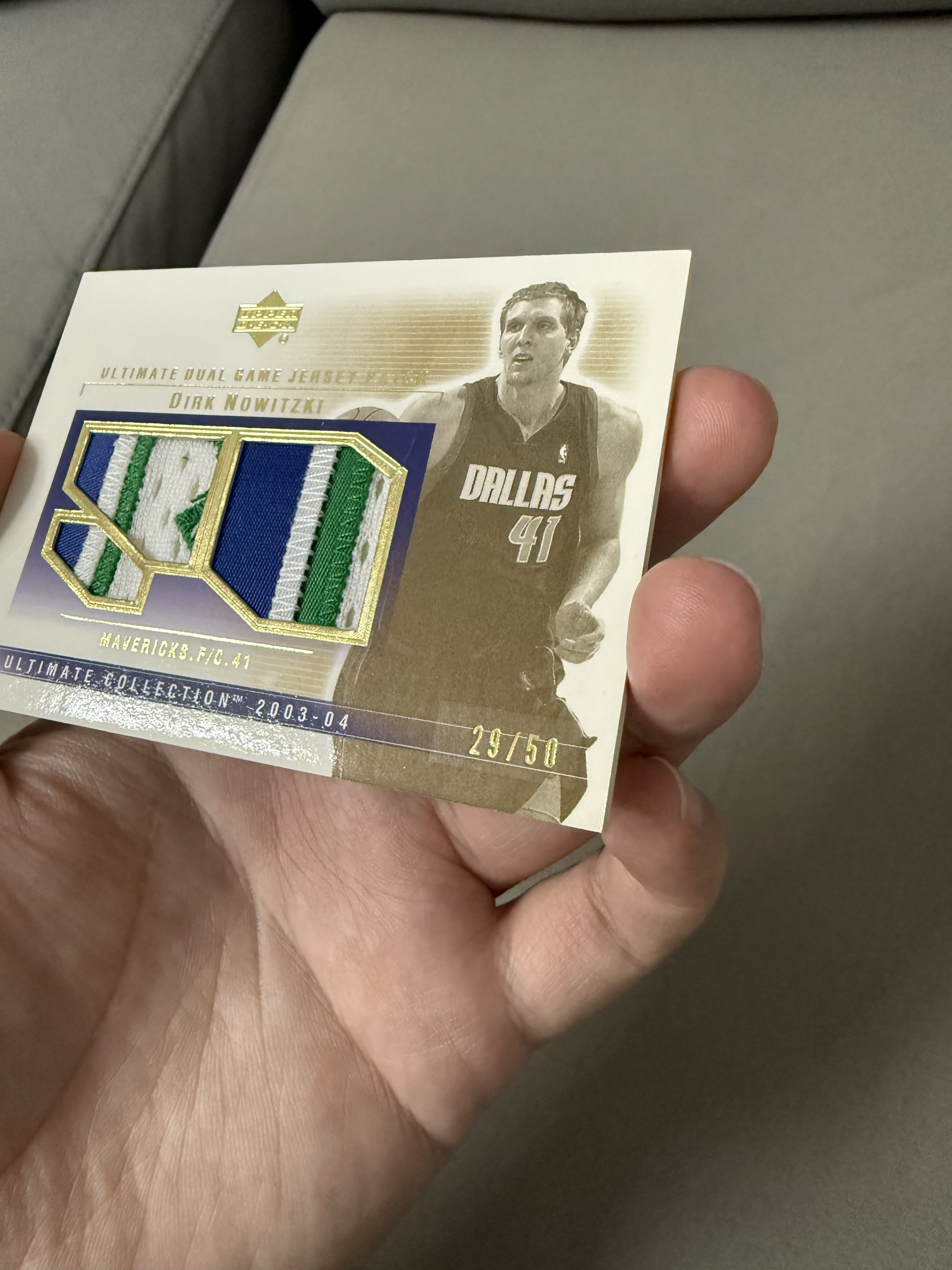 2003-04 Upper Deck Ultimate Dirk Nowitzki 德克 诺维斯基 诺威斯基 司机 达拉斯小牛 UD 终极 50编 双窗 gu落场球衣 patch 大hit卡 卡片如图