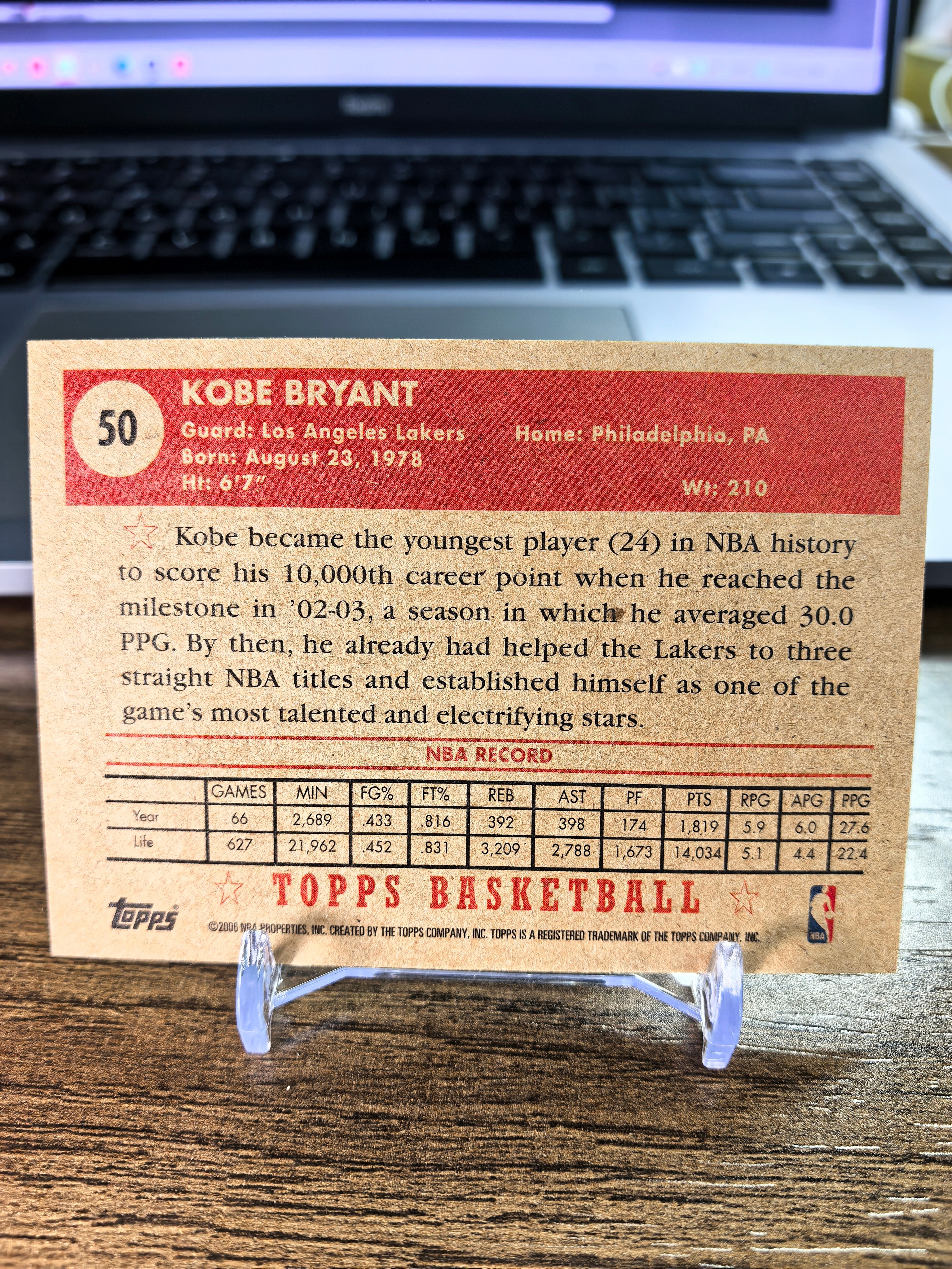 2005-06 Topps 1952 Style Kobe Bryant 科比 布莱恩特 洛杉矶湖人传奇 黑曼巴 老大 四大分卫 1952Style 复古系列 印签签字特卡 金标 绝版珍藏
