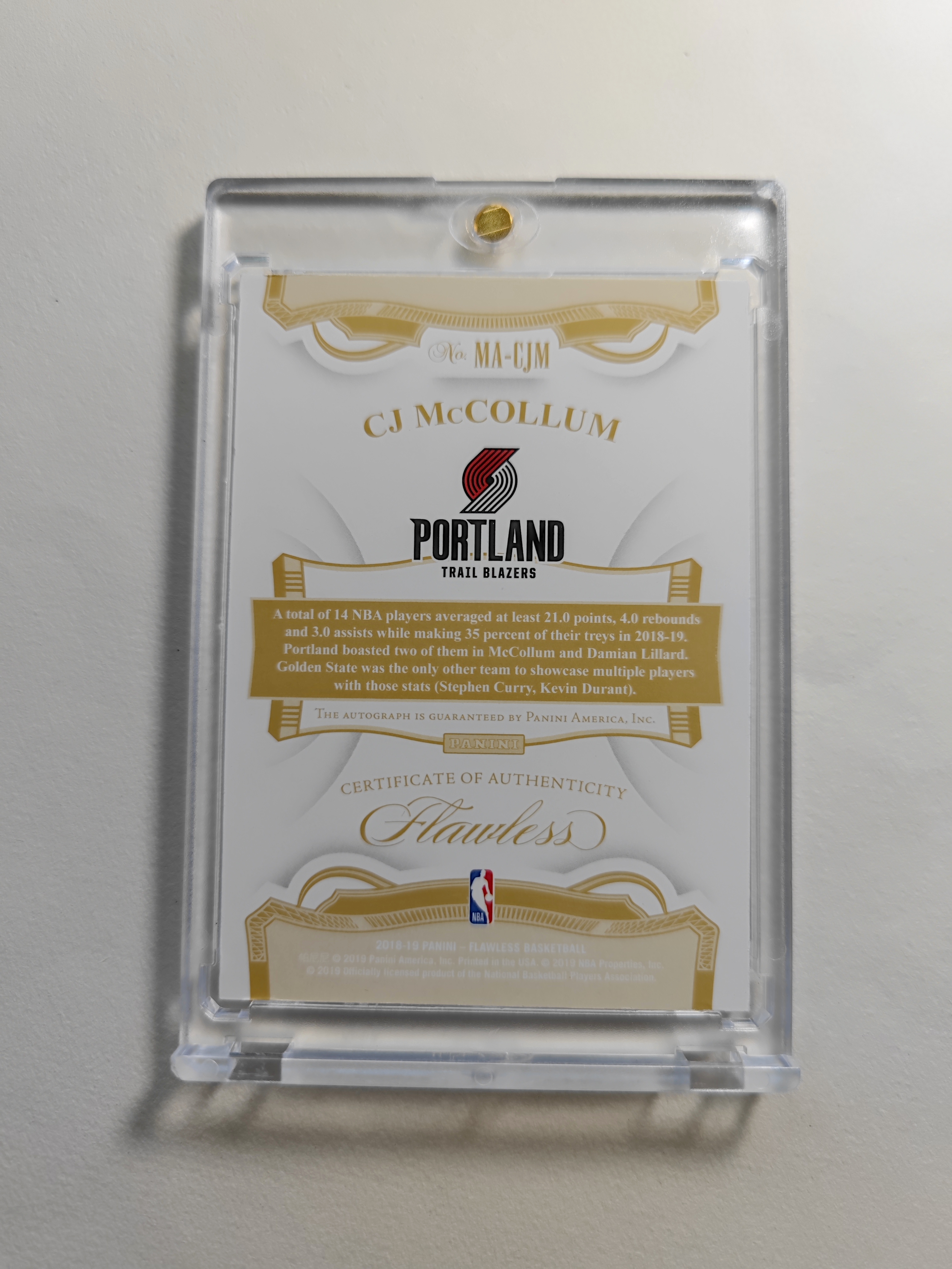 2018-19 Panini Flawless CJ McCollum 开拓者 CJ 麦科勒姆 手提箱签字 卡签 /25
