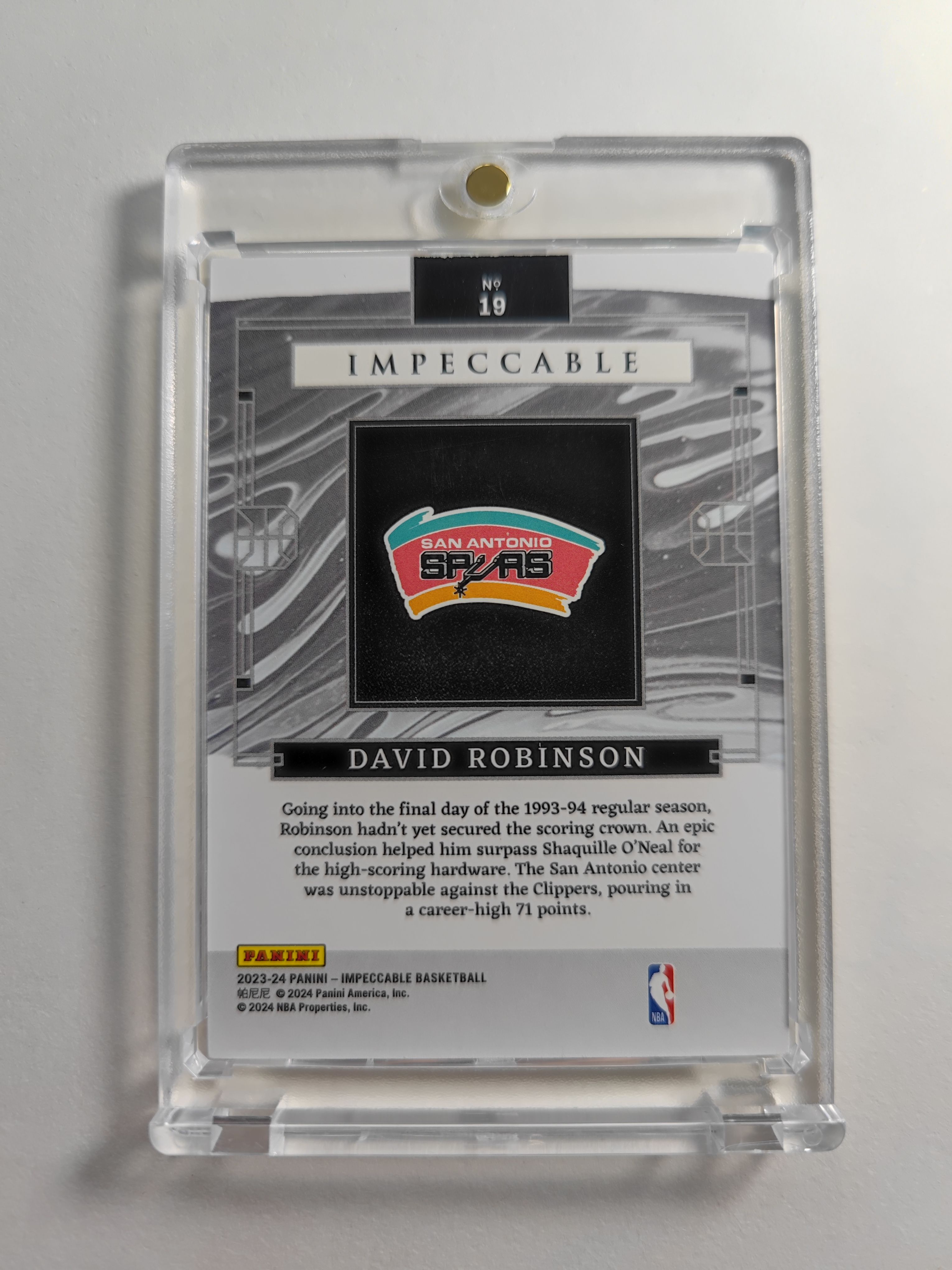 2023-24 Panini Impeccable David Robinson 小真金 马刺 大卫罗宾逊 无字数据 71分数据 记录单场最高得分 71编