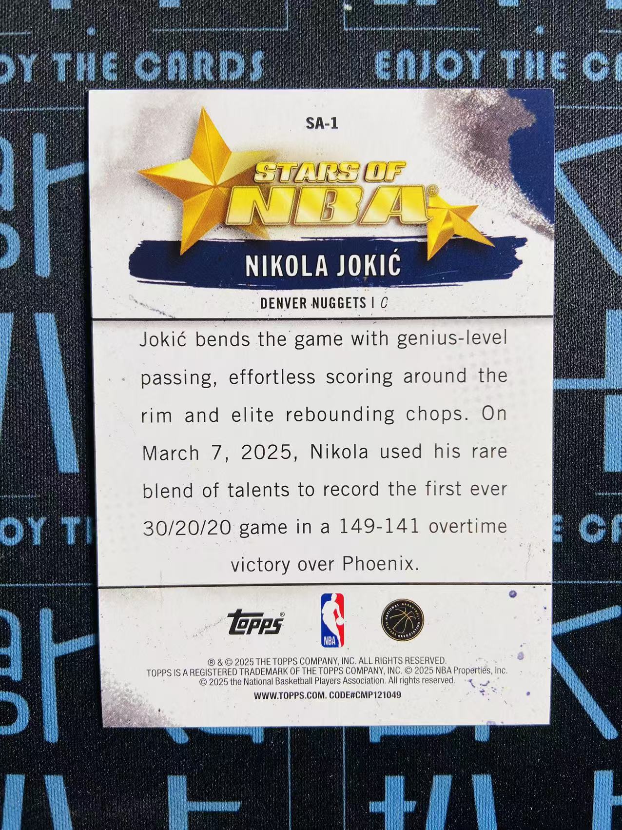 5.理赔:为安全起见,金额较大的卡片建议私信保价。【收到货品请务必录开箱视频】,并一镜到底逐张清点卡片并检查品相,以供卡品纠纷时维权证明。如需【快递理赔请保留好快递包装及面单】,且【在签收48小时内联系物流方,售后微信15602172114将协助赔偿】超时申诉物流方将不予赔偿!没有证据或超时再联系我们将无法帮助和卖家或物流方申请理赔!