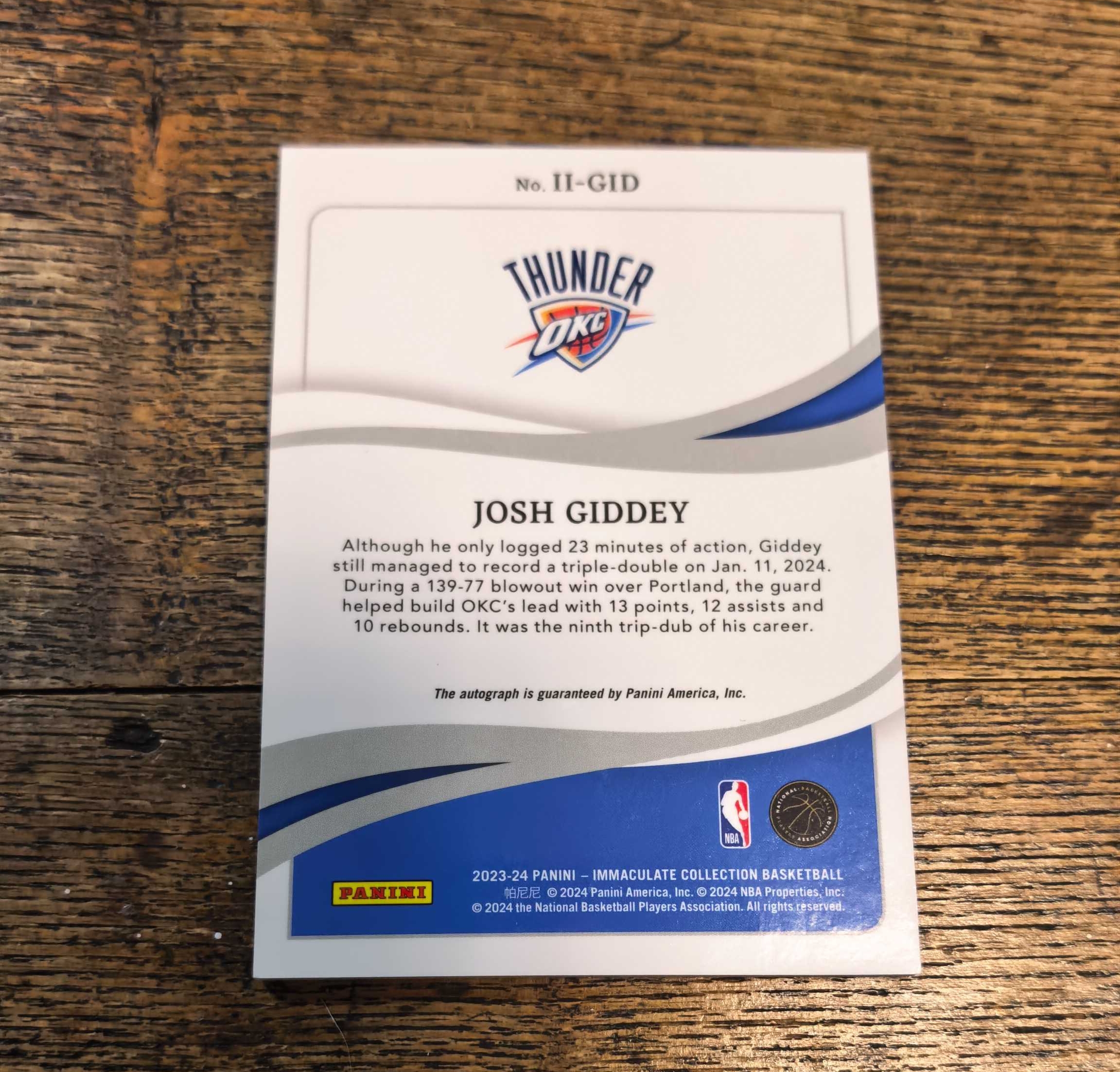 2023-24 Panini Immaculate Josh Giddey 爱咪咪 新秀次年 雷霆 约什 吉迪 签字 卡签 99编