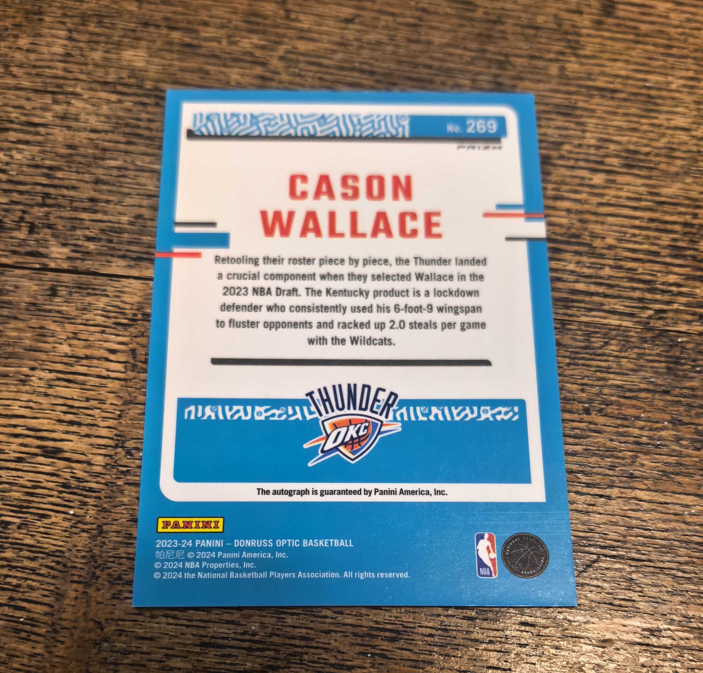 2023-24 Panini Optic Cason Wallace RC 杜蕾斯 op 雷霆 总冠军 新秀 卡森 凯森 华莱士 签字 银折 折射 卡签 SGA搭档 切特最爱小弟
