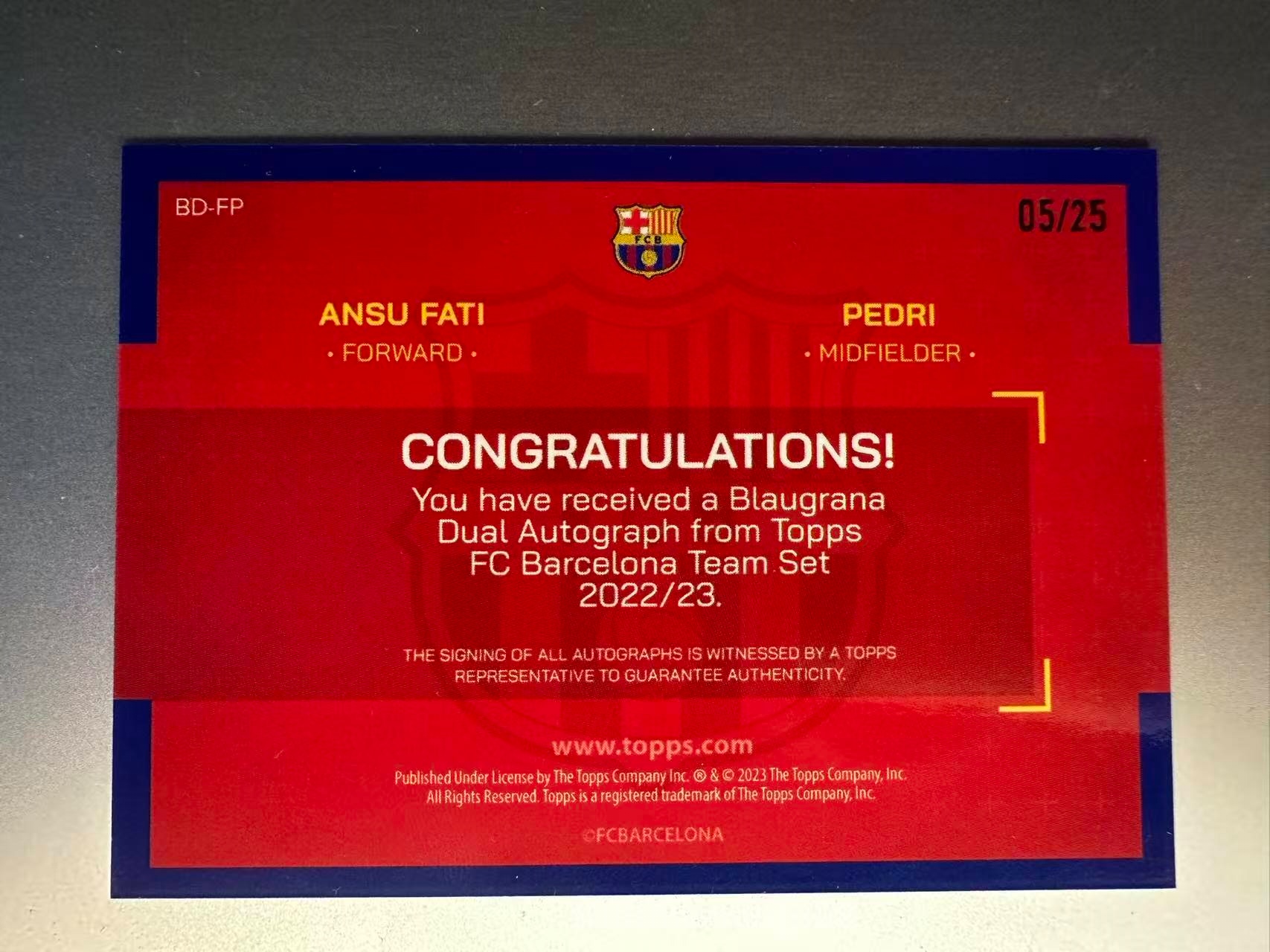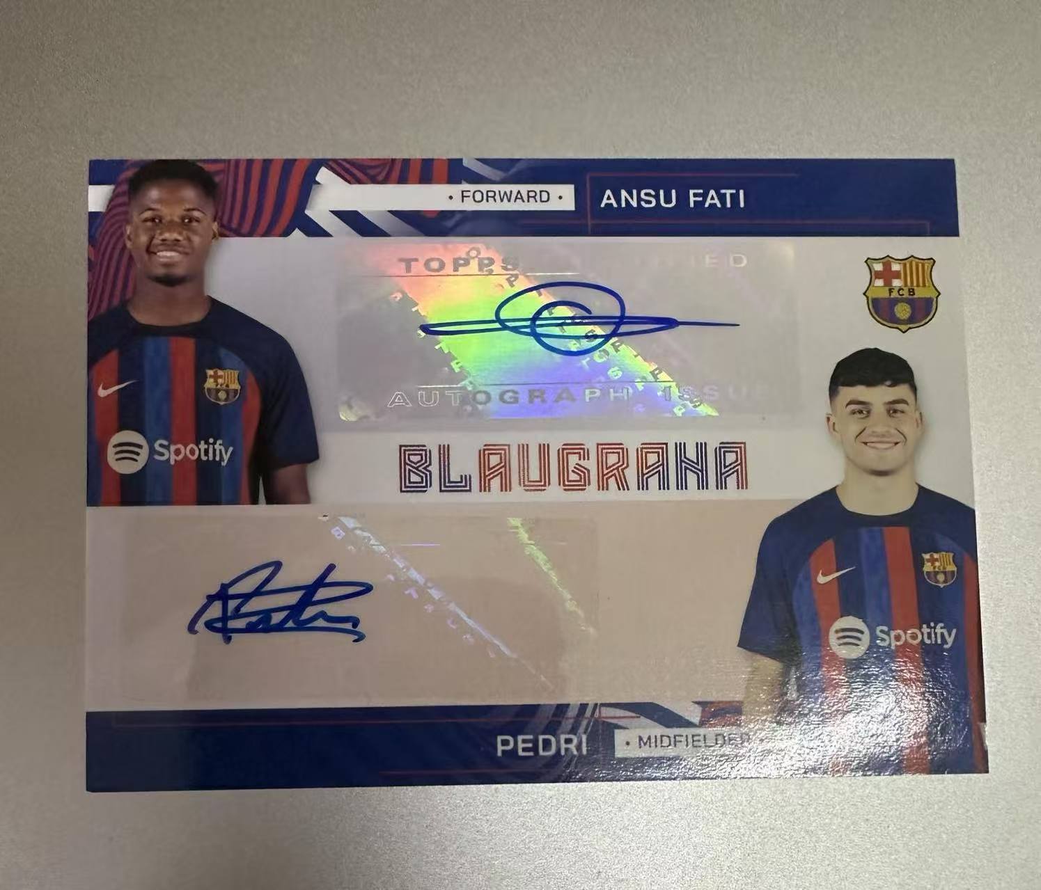 2022-23 Topps Barcelona Pedri 巴萨队盒 双人签字 佩德里 安苏法蒂 西班牙 5/25编 双完美签 卡品如图 顺丰到付 小小王A33