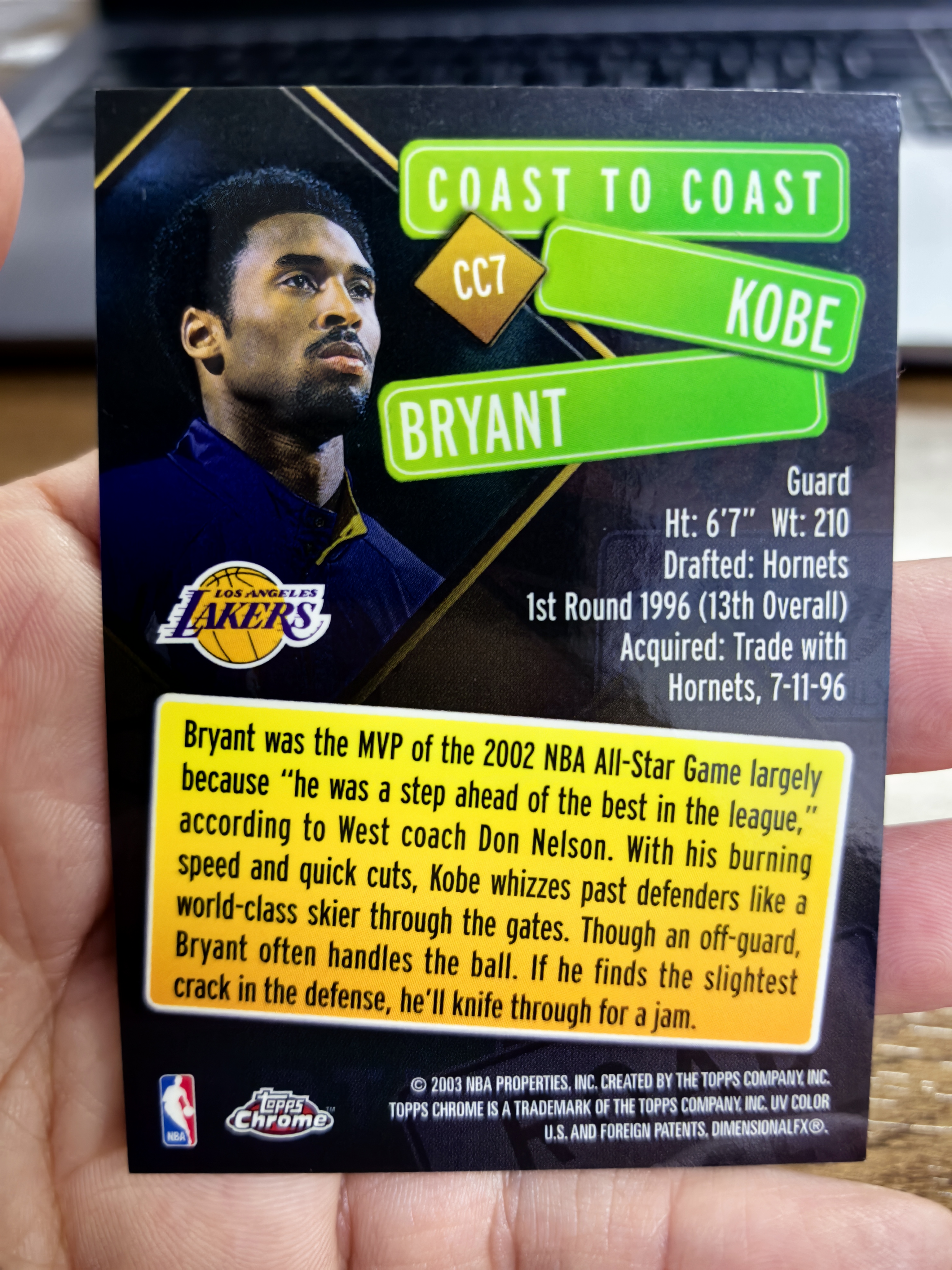 2002 Topps Chrome Kobe Bryant 科比 布莱恩特 洛杉矶湖人传奇名宿 黑曼巴 老大 银折卡 COAST TO COAST特卡 超大比例特卡